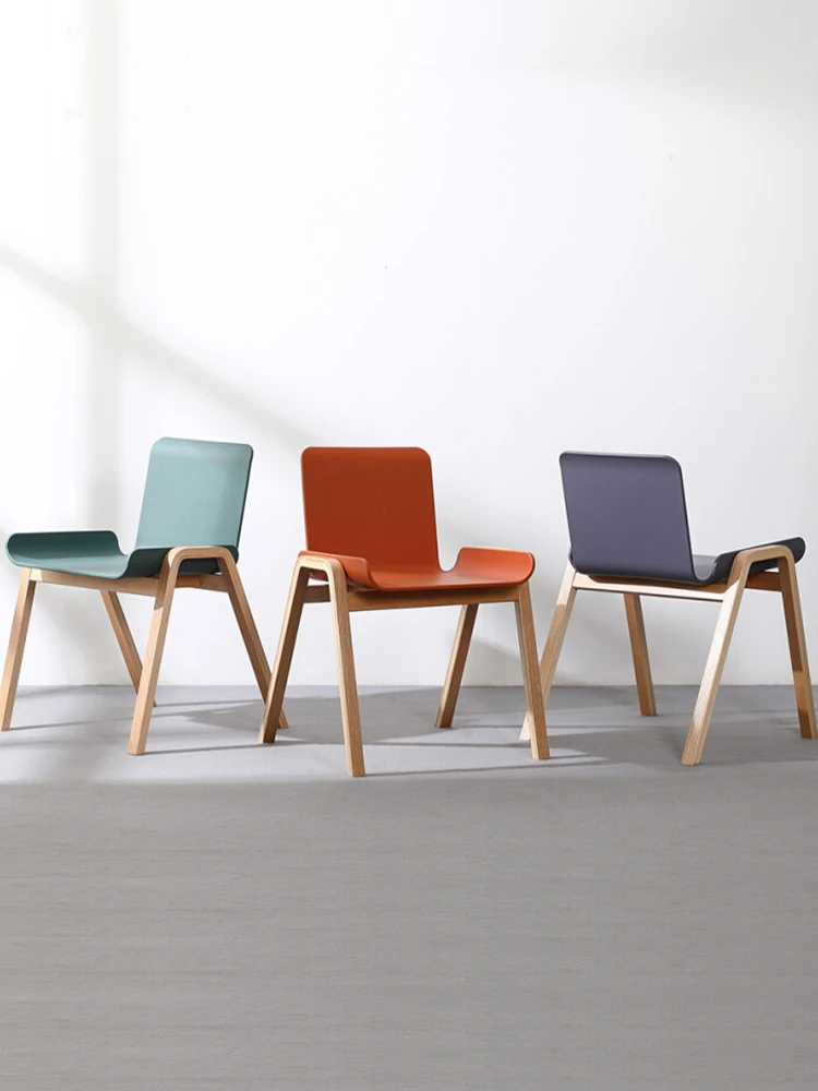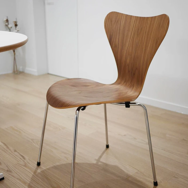Mid-Century Danish Seven-Words Chair - Modern Minimalist Solid Wood Dining Chair, Stylish Curved Wood Design, Perfect for Office or Home Use, Comfortable Single Seat