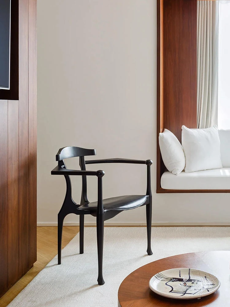 Nordic Designer Wooden Dining Chair with Wabi-Sabi Soft Cushioned Seat - Natural Solid Wood Chair for Coffee Shops and Meeting Rooms, Elegant Leather Finish