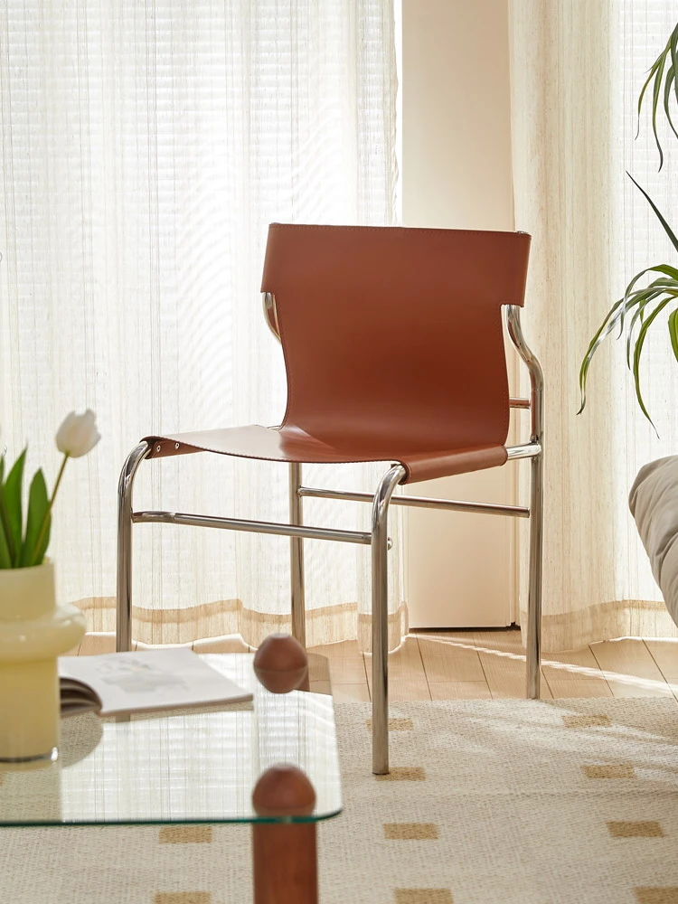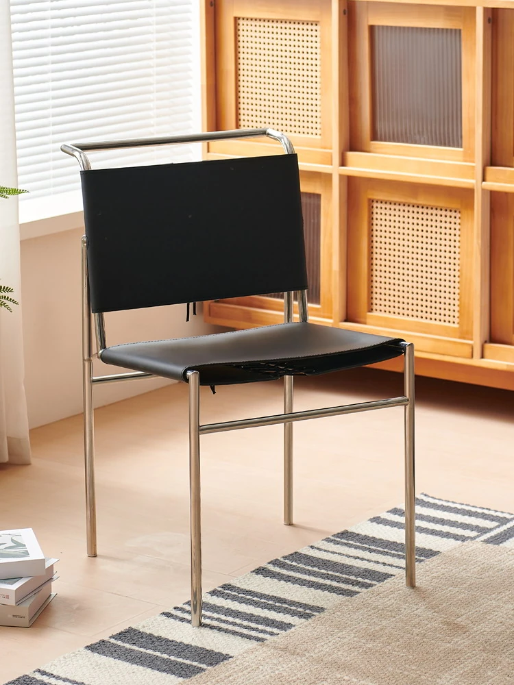 Mid-Century Modern Stainless Steel Dining Chair with Leather Upholstery - Scandinavian INS Style Armchair for Office Meetings and Conversations