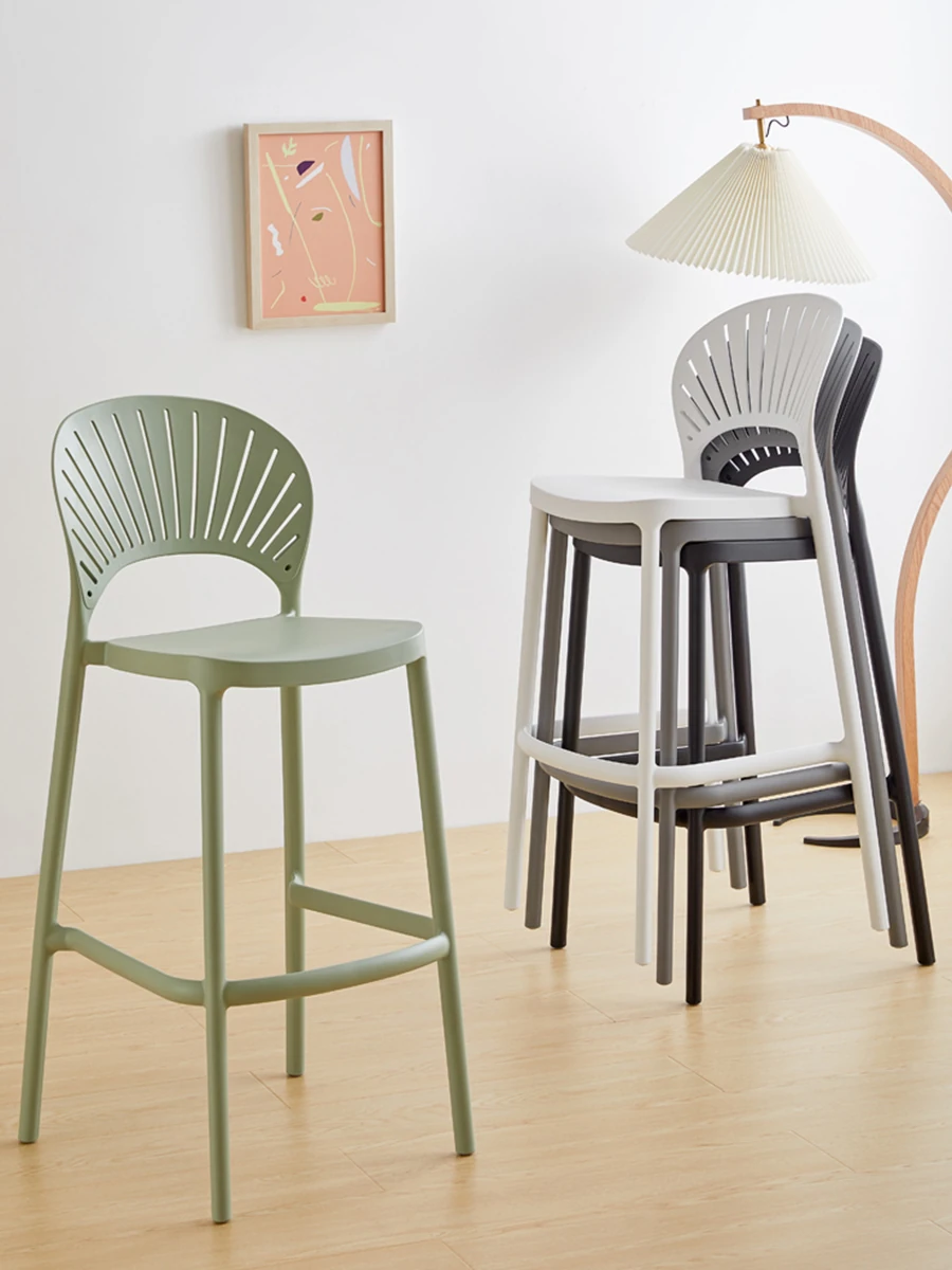 Scandinavian Style Bar Stool - Modern Minimalist High Chair for Home and Outdoor Use, Stackable Café Reception Counter Stool, Durable Plastic Design
