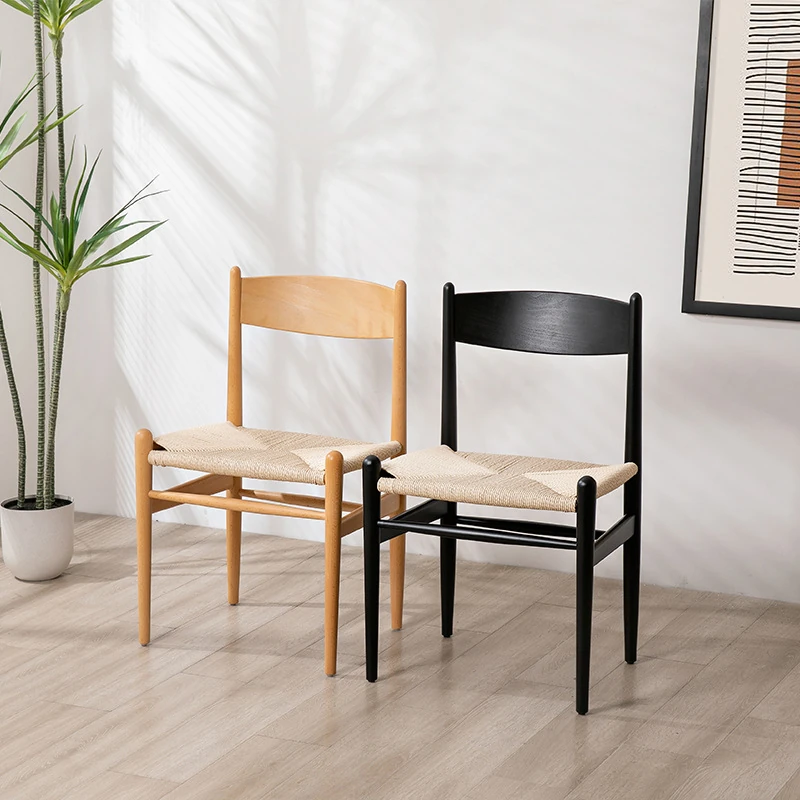Vintage-Inspired Rattan-Woven Solid Wood Dining Chair - Wabi-Sabi Design, Mid-Century Backrest, Minimalist Style for Home & Study, Perfect for Modern Aesthetics