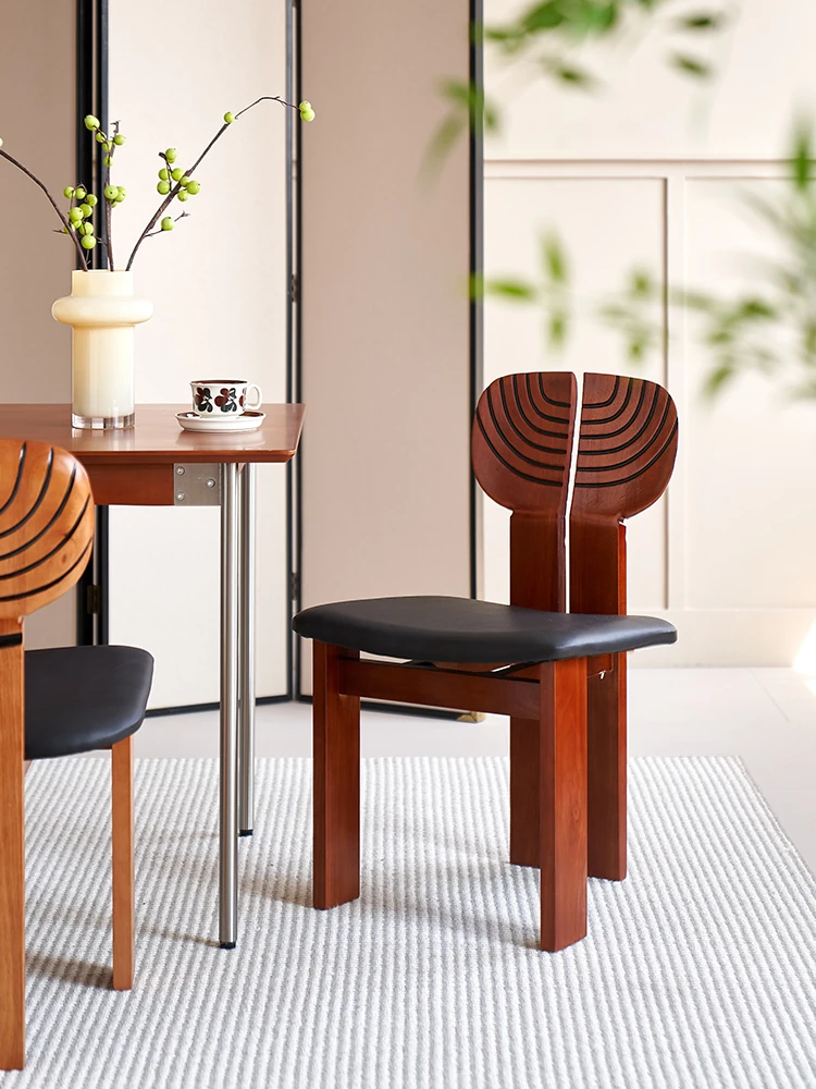 Nordic Vintage Solid Wood Dining Chair with Sculpted Backrest - Designer New Chinese Style Leisure Chair for Spacious Interiors