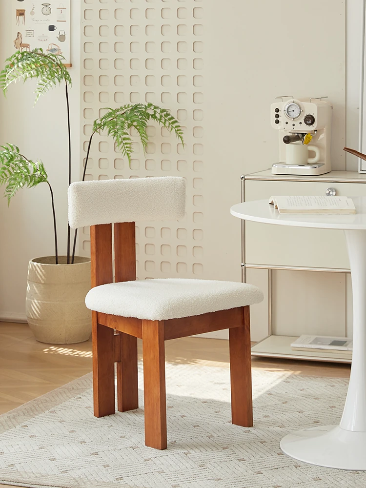 北欧スタイルの無垢材ダイニングチェア|侘び寂びの美を纏った中古デザイン|魅力的な化粧台用背もたれ付き|軽やかな高級感あふれるファブリックソフトパッキング|高品質で自宅の食卓にぴったり!