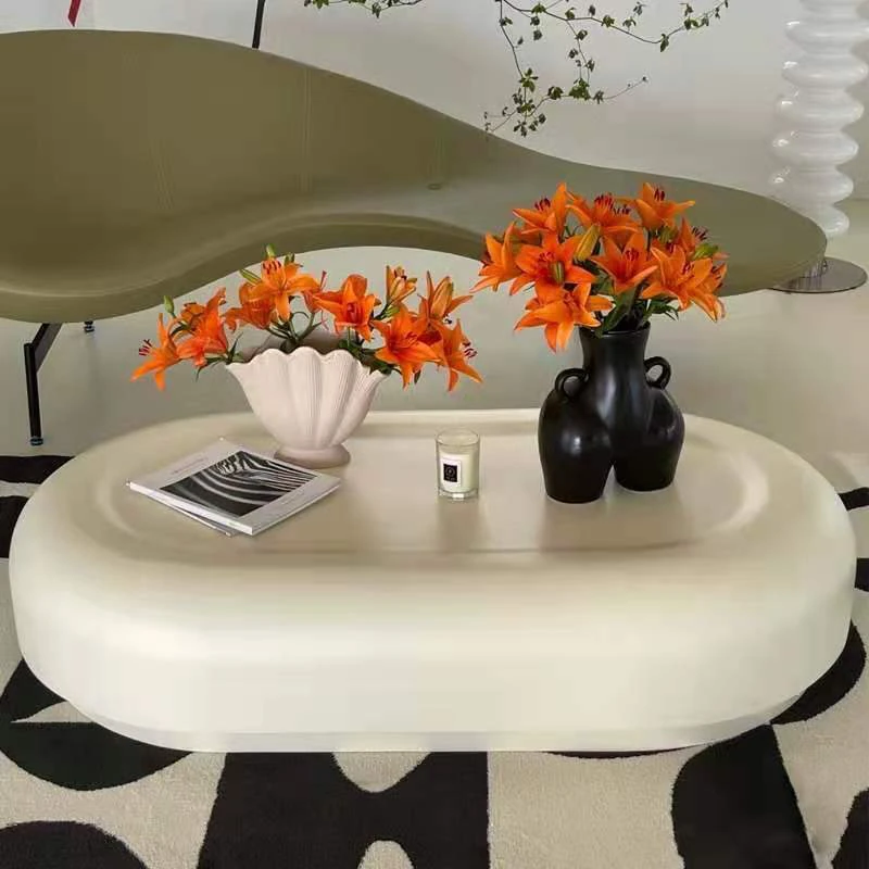 侘寂風デザインのオシャレな肥皂置き・ティーテーブル|インスタで話題の個性的な楕円形・グラスファイバー製の中古ソフトインテリア家具です。洗練された美しさで、あなたの空間を格上げ!