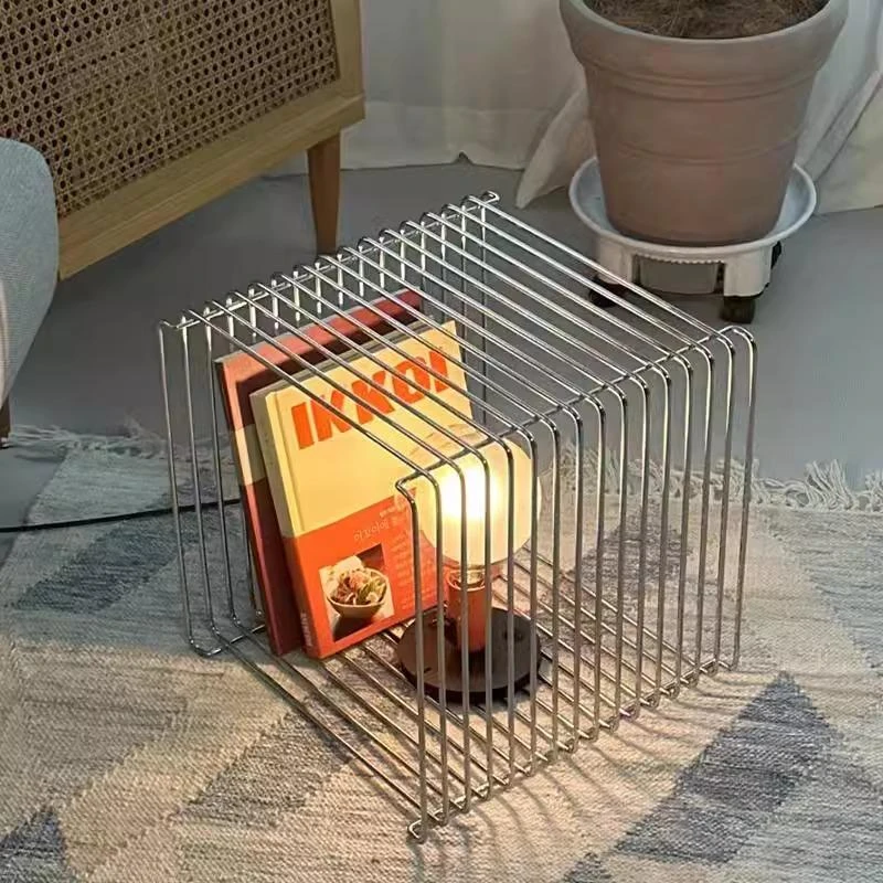 デンマークデザインのステンレススチール線材を使用したクリエイティブなコンビネーション、オシャレな金属製の書類&新聞ラック、ヴィンテージスタイルのベッドサイドテーブル収納。お部屋をスタイリッシュに演出します!