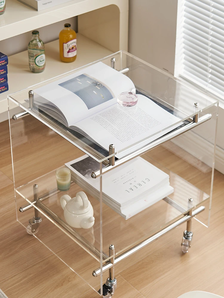 アクリル製サイドテーブル 小型キャリー収納キャビネット 中古リビングルーム モバイルコーヒーテーブル 家庭用ナイトスタンド おしゃれなインスタ映え 透明感あるデザインでお部屋をスタイリッシュに演出!