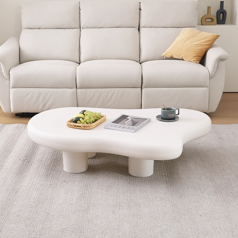 インスタグラムで話題!北欧の侘び寂びスタイル「雲のようなコーヒーテーブル」アート感溢れる中古クリーム色インテリアにぴったりの不規則なローテーブル。おしゃれな民宿の雰囲気を演出!
