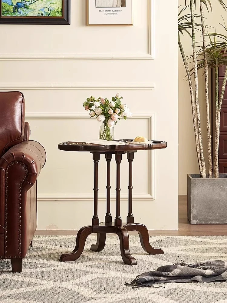 中古のリビングソファサイドテーブル 小さな円形デザイン おしゃれで高級感漂う ベッドサイド用フレンチヴィンテージコーヒーテーブル エレガントなひとときを演出するアイテムです。