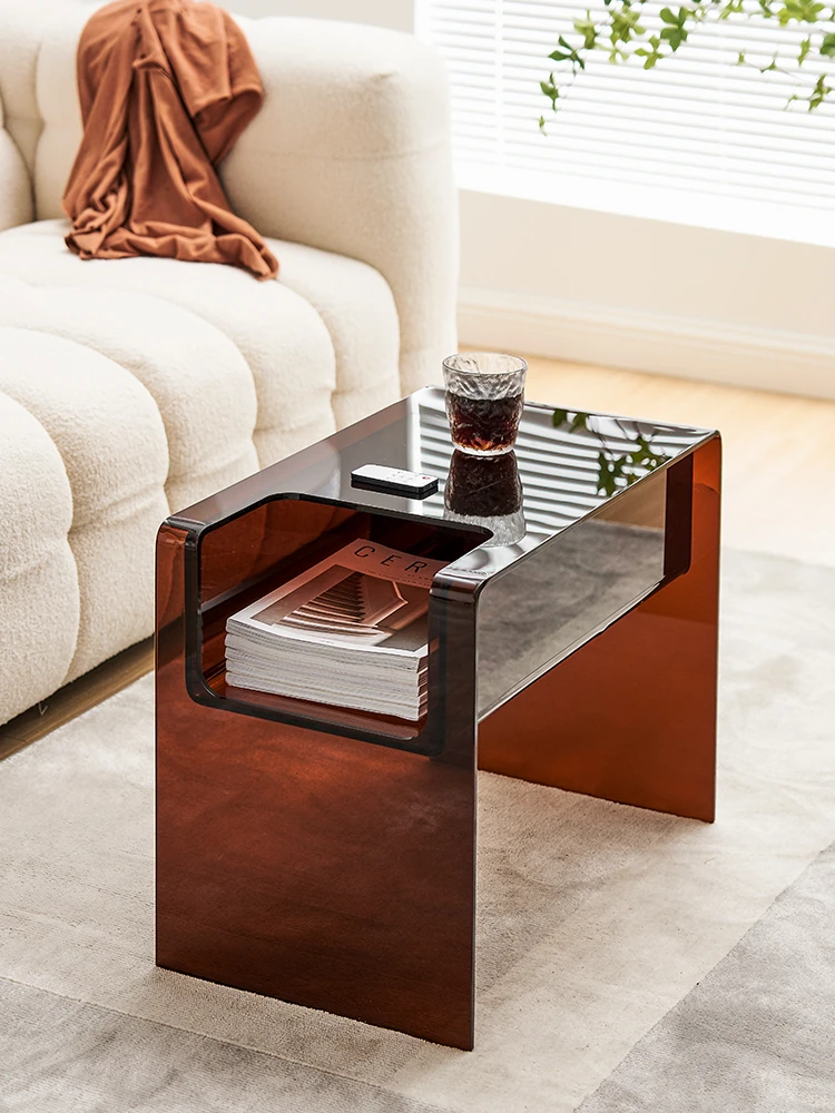 アクリル製サイドテーブル|オシャレなリビングや寝室にぴったりの北欧風クリアテーブル|インスタ映えする収納力抜群な角テーブル|おしゃれな空間を演出するクリエイティブなデザイン!