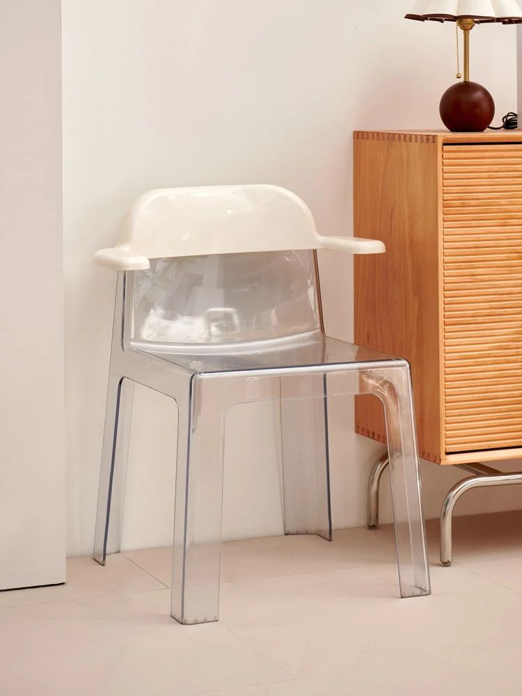 Chic Nordic Acrylic Dining Chairs for Small Spaces – Modern Minimalist Cream-Colored Backrest Chairs Perfect for Home Decor and Trendy Interiors