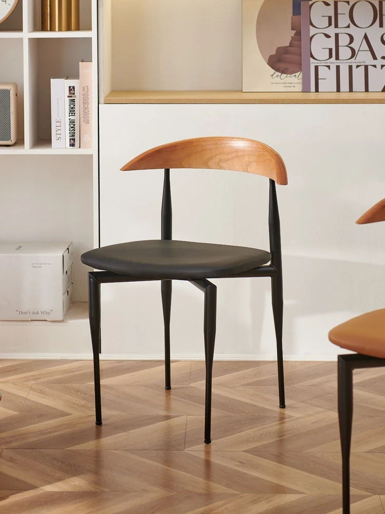 Nordic Iron Dining Chair – Vintage Italian Designer Armchair for Home Use, Solid Wood Backrest, Horned Design, Stylish and Chic for Relaxed Dining Spaces