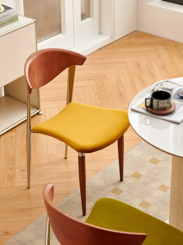 Vintage-Inspired Nordic Designer Dining Chair - Elegant Mid-Century Modern Upholstered Coffee Chair for Home Use, Perfect for Bedroom or Study Desks - Chic and Comfortable Lightweight Luxury Seating