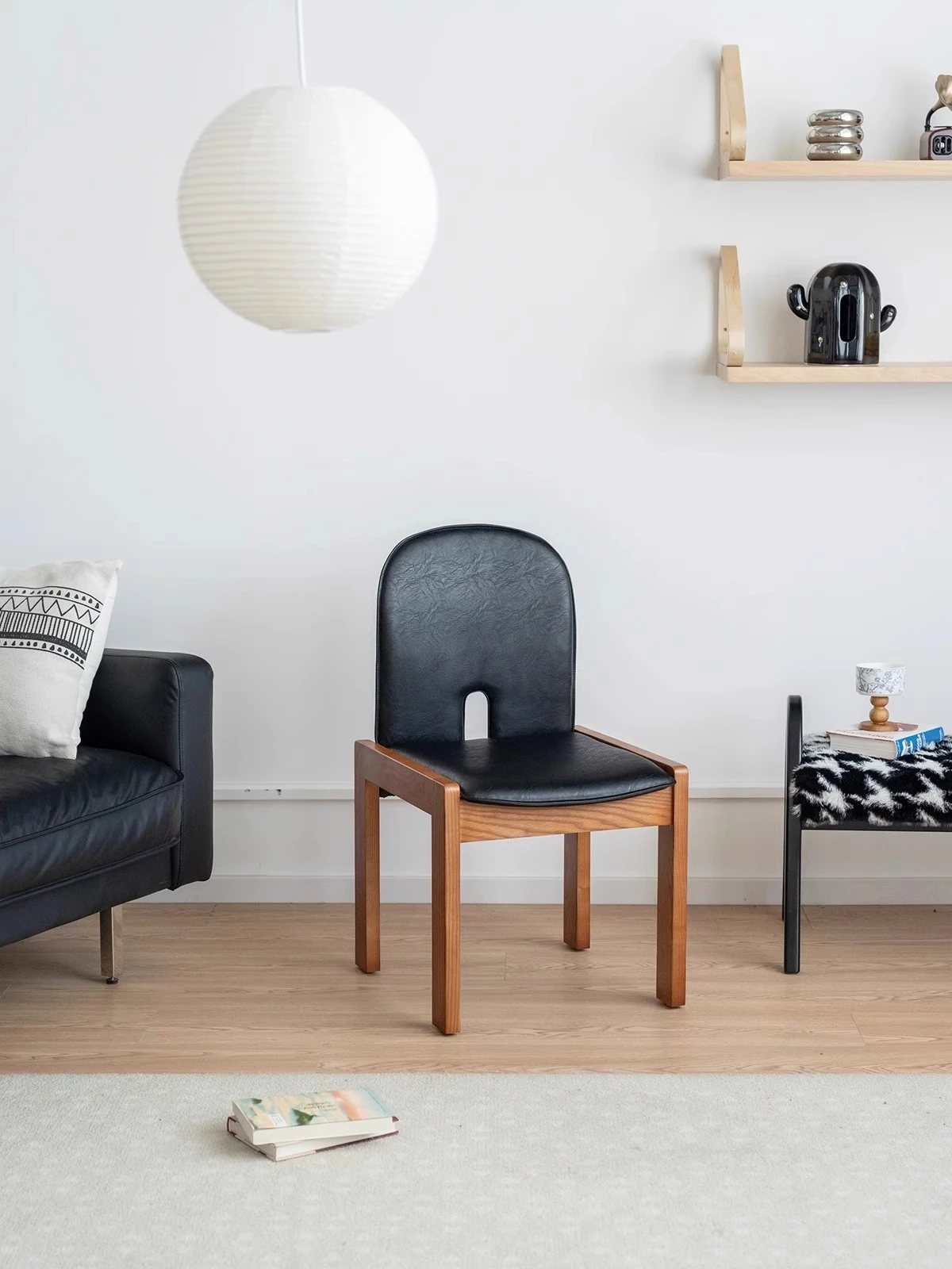 Vintage-Inspired Solid Wood Dining Chair - Modern Minimalist Wabi-Sabi Design for Home Use - Elegant Scandinavian & French Retro Style with Comfortable Backrest - Perfect Addition to Your Dining Room!