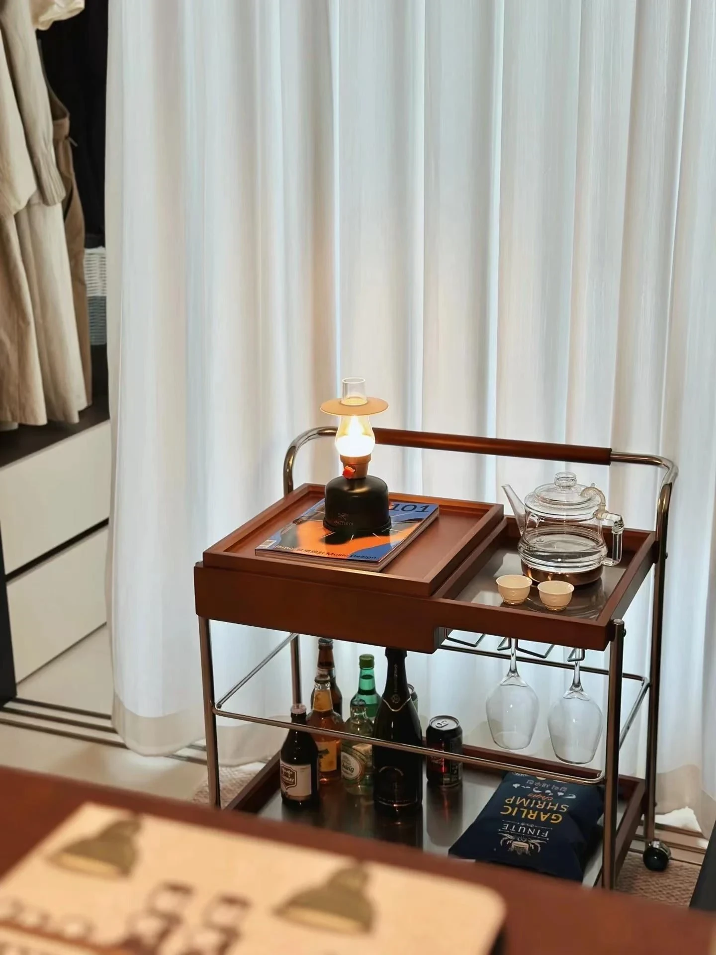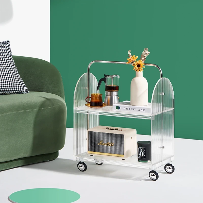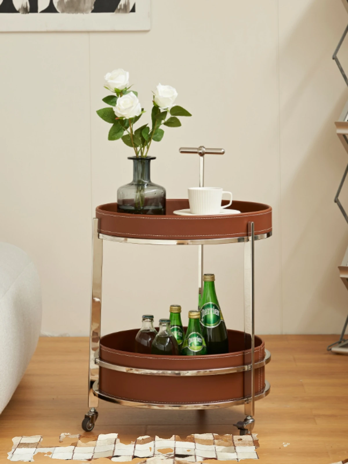 Modern Trendy Small Trolley - Creative Side Table with Nordic Wabi-Sabi Touch, Vintage Glass Serving Cart for Living Room Storage and Stylish Decor