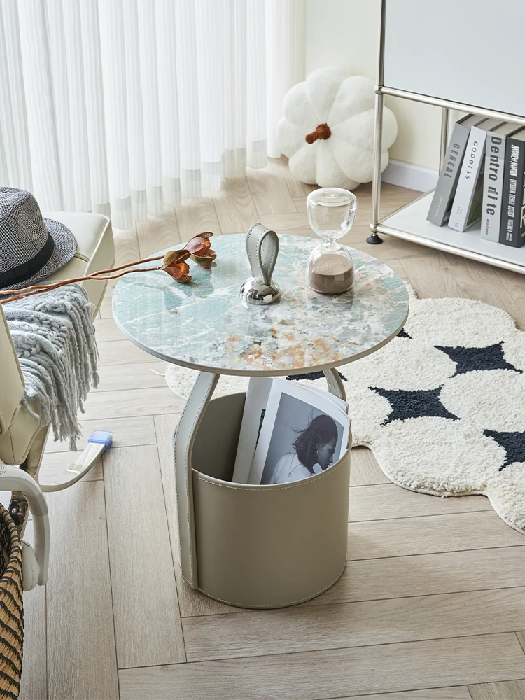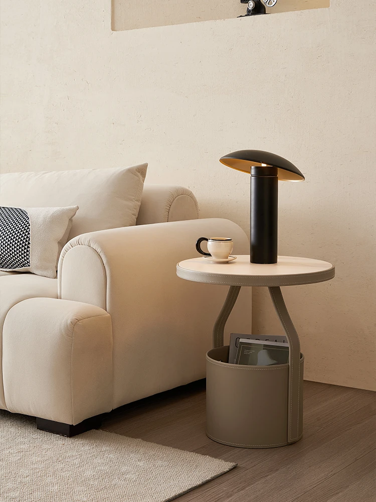 Stylish Italian Leather Storage Sofa Table with Storage Corner, Elegant Bedside Cabinet, and Creative Handheld Mini Side Table – Perfect for Modern Living Spaces!