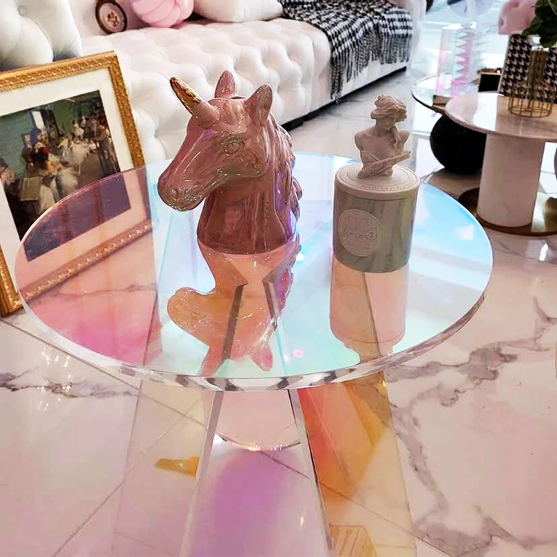 Nordic-Inspired Trendy Small Coffee Table - Colorful Acrylic Accent Table for Living Room - Minimalist Transparent Design - Chic and Creative Home Décor