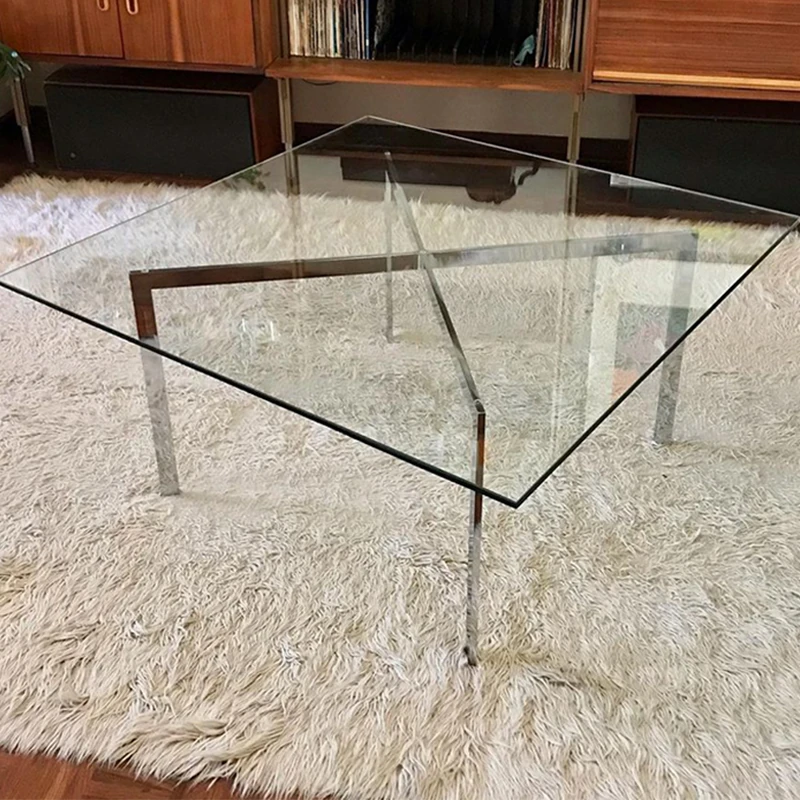 Stylish Nordic Bauhaus Square Coffee Table - Barcelona Glass Design with Minimalist Stainless Steel Frame, Perfect for Modern Living Spaces