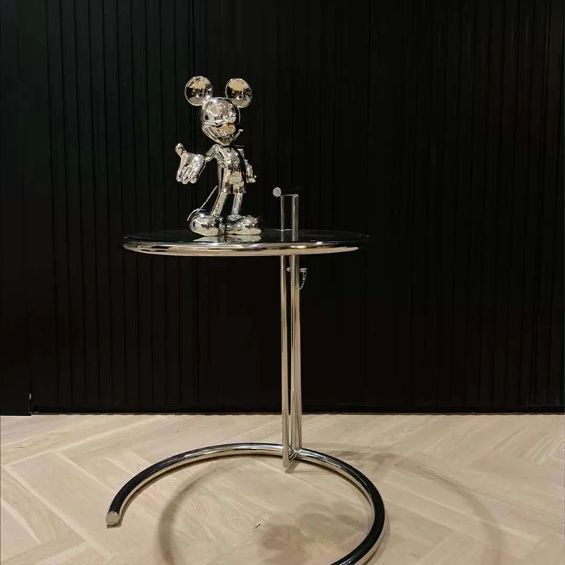 Gray Adjustable Lift Coffee Table - Vintage Modern Minimalist Style, Creative Stainless Steel and Glass C-Shaped Corner Table, Trendy Sofa Side Table
