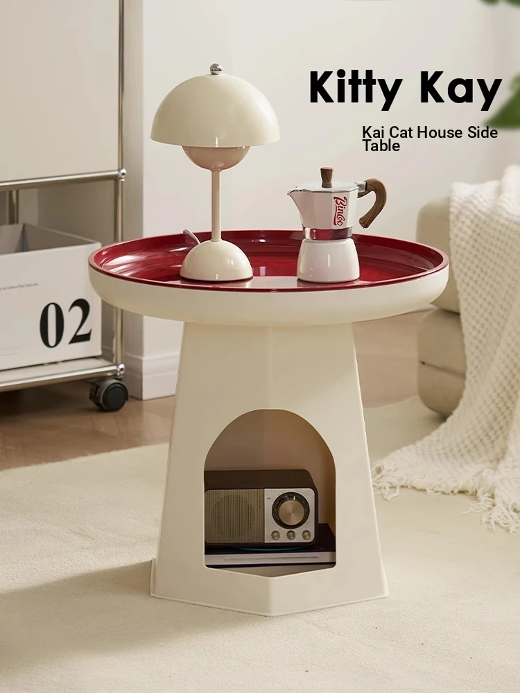 Chic Cream-Furry Cat Bed Coffee Table - Round, Creative & Space-Saving Design for Living Rooms, Perfect for Small Homes & Pet Stores. Stylish and Unique Corner Table!
