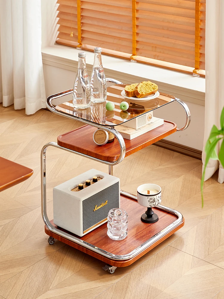 Nordic Style Vintage Side Table – Movable Glass Corner Cart for Living Room, Creative Nightstand for Bedroom Storage Solutions