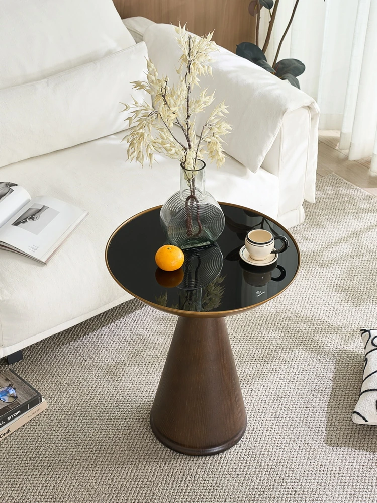 Luxurious Modern Round Walnut Wood & Glass End Table - Stylish Mid-Century Coffee Table for Living Room, Perfect for Enhancing Your Home Décor.