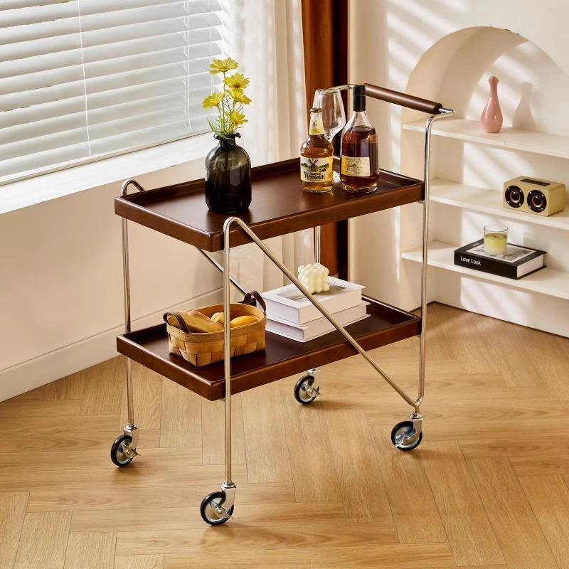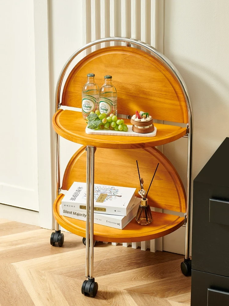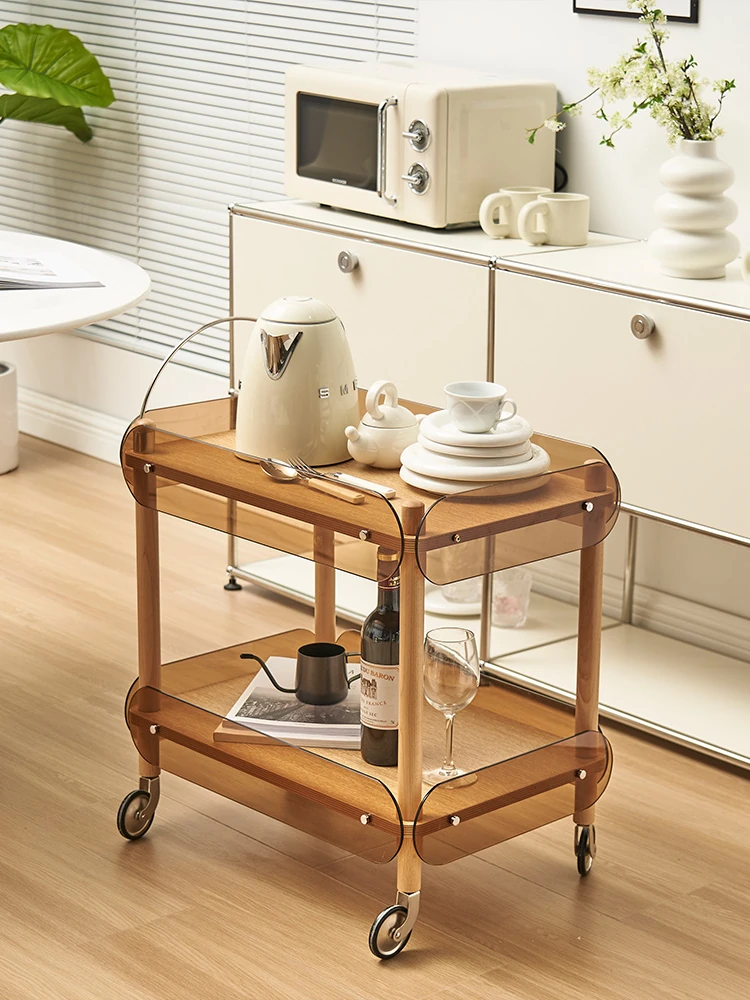 Movable Solid Wood Trolley - Stylish Glass Serving Cart for Small Living Spaces, Perfect for Your Living Room, Sofa Side Table, Tea Table, or Corner Storage Solution