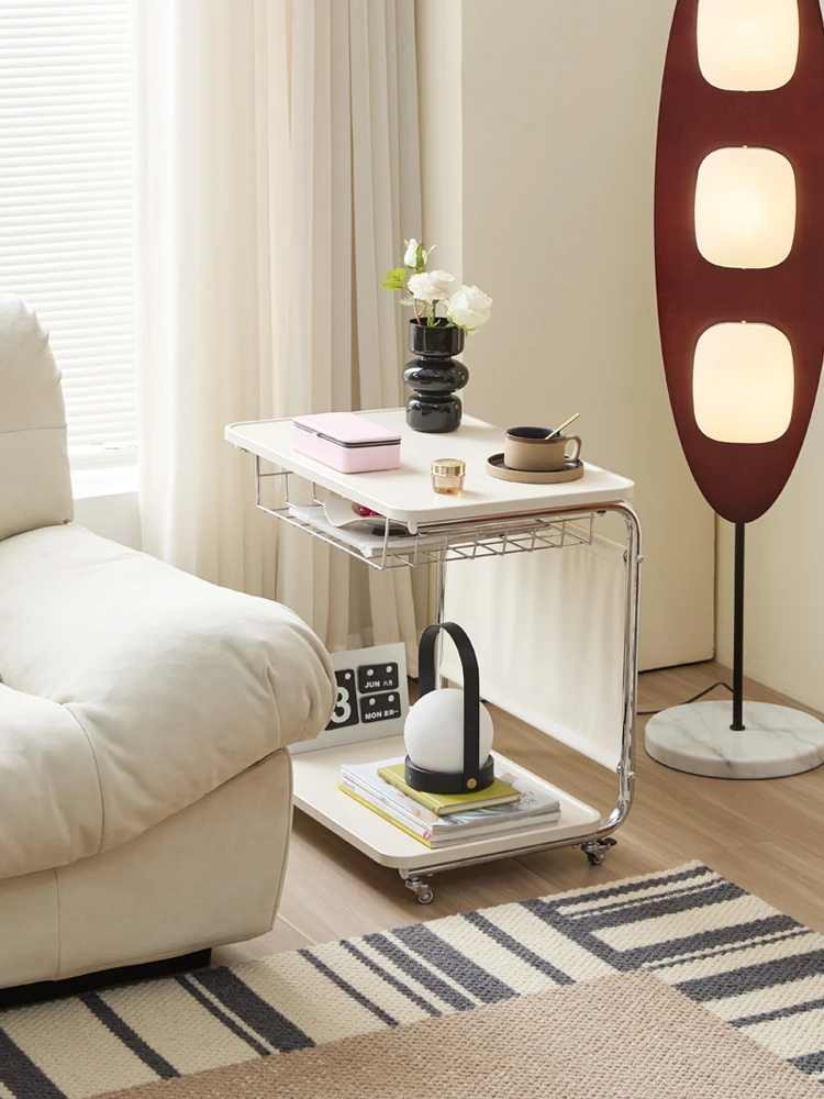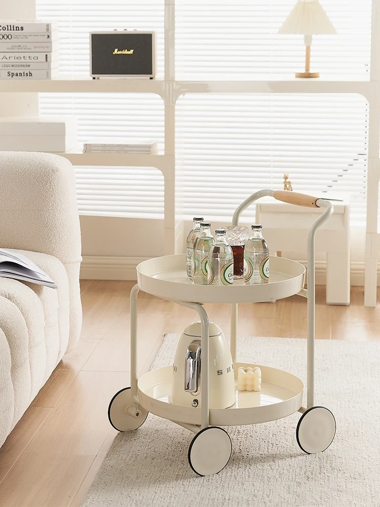 Creamy Wind Mobile Cart Side Table for Home - Modern Minimalist Sofa Corner Table for Small Apartments - Stylish Coffee Table and Storage Rack for Living Room
