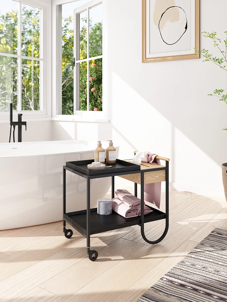 "Mid-Century Modern Bauhaus Side Table & Rolling Cart - Stylish Storage Solution for Small Spaces, Scandinavian Design, Retro Coffee Table for Your Living Room"