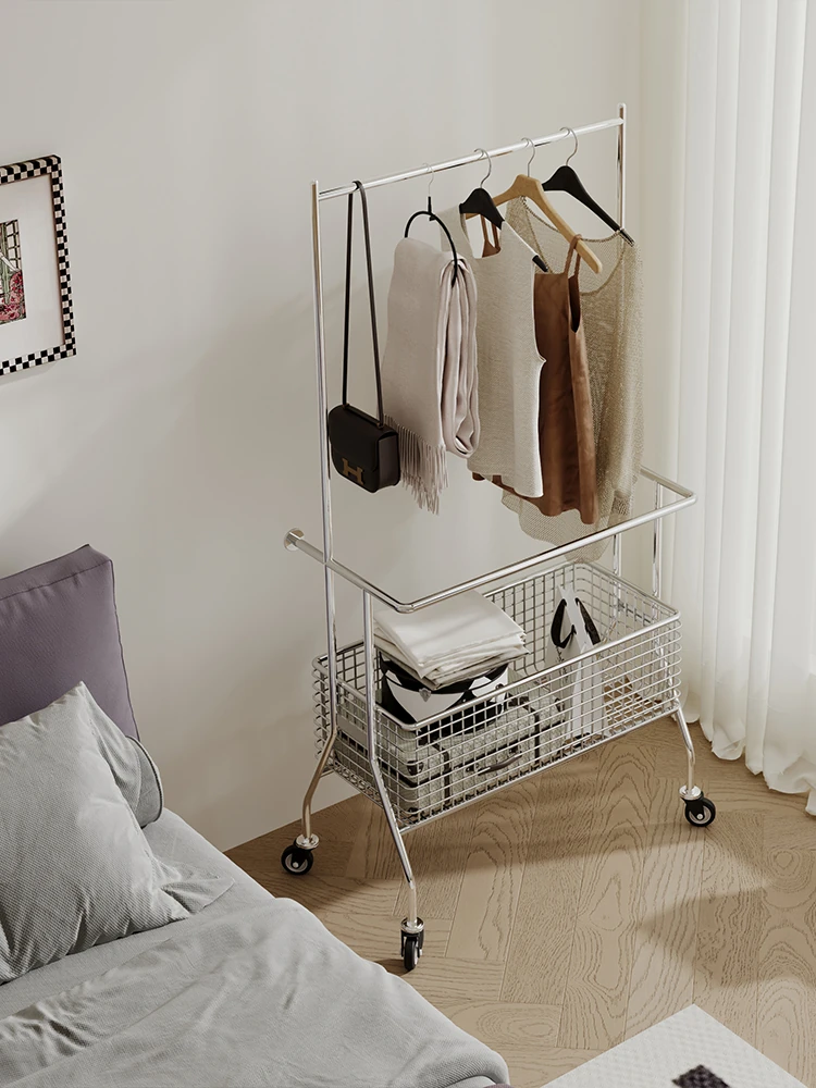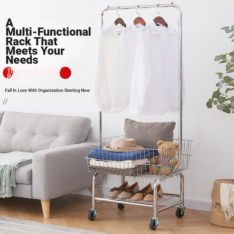 Multifunctional Freestanding Clothes Rack with Basket - Simple Bedroom Garment Hanger and Storage Shelf for Indoor Use, Ideal for Organizing Clothes and Hats at Home