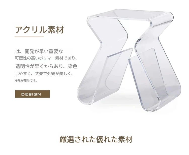 ヴィンテージ風 折りたたみスツール|おしゃれなインスタ映え!透明アクリル製でお部屋を華やかに。使い勝手抜群の折りたたみ靴ベンチ、メイクアップ用スツールとしてもおすすめ!