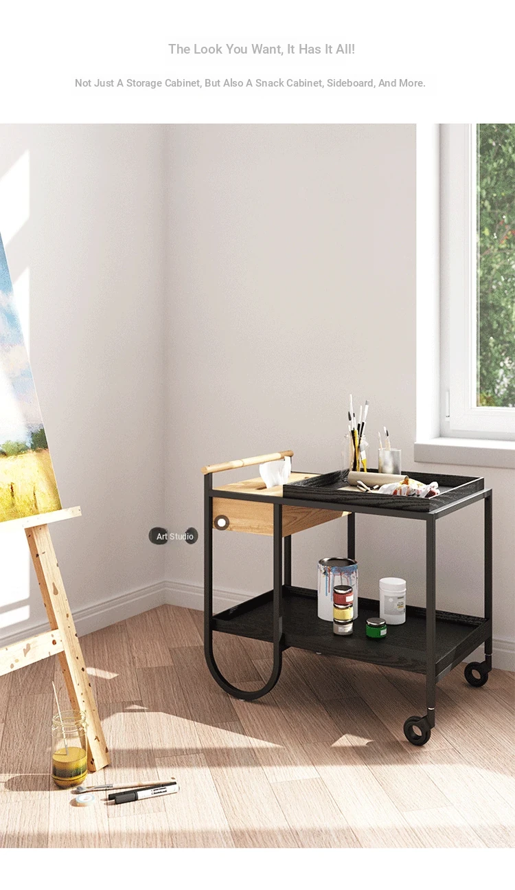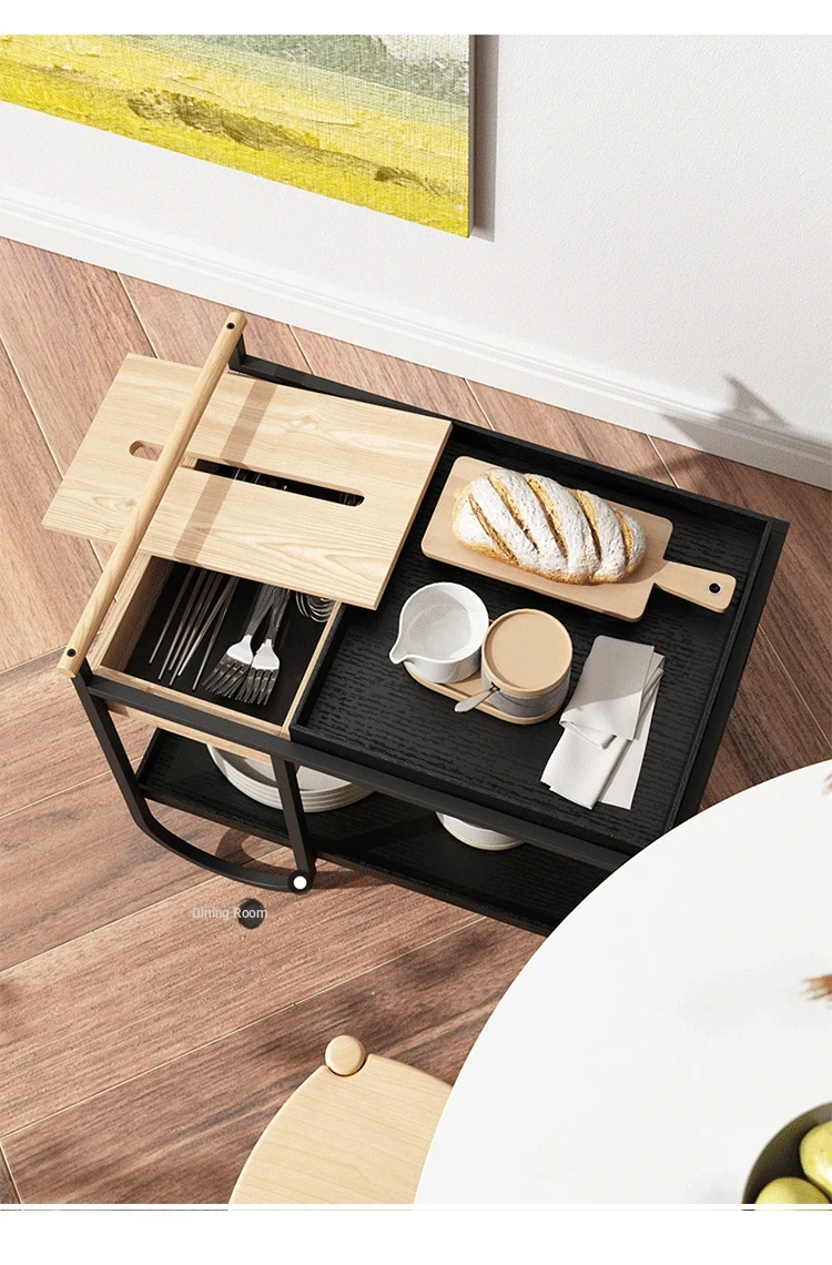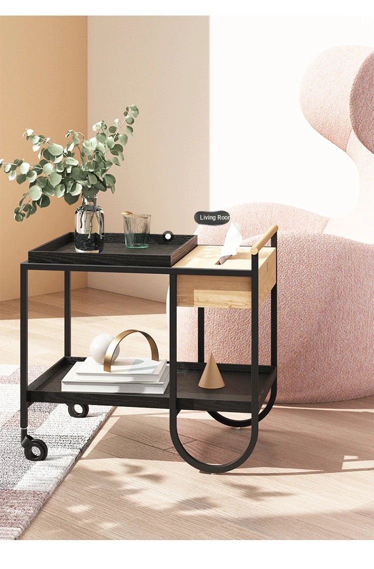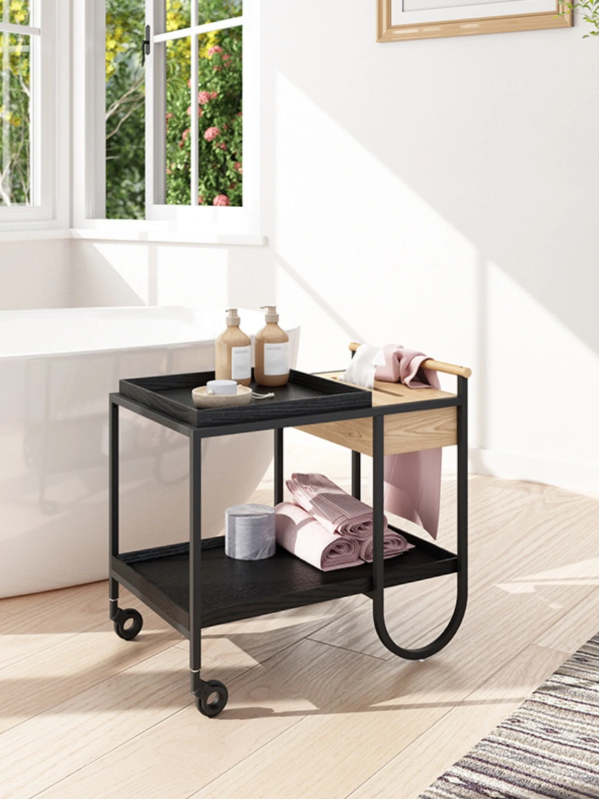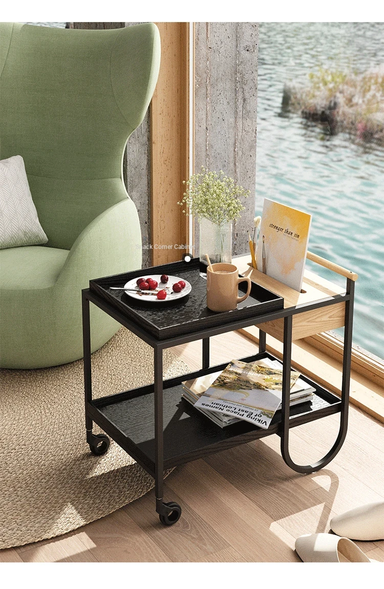 "Nordic Minimalist White Ash Wood Rolling Cart – Elegant Storage Side Table, Sofa End Cabinet, Coffee Table & Versatile Corner Shelf for Modern Living Spaces"