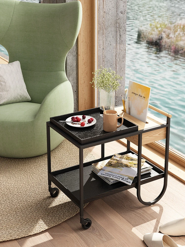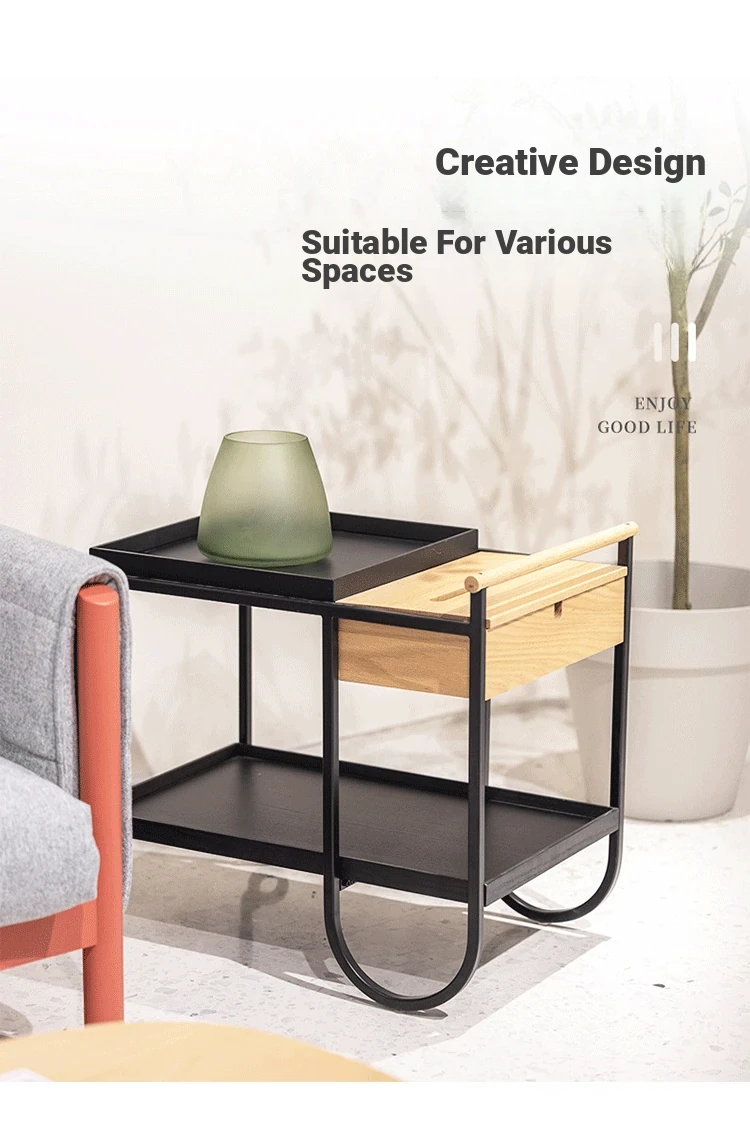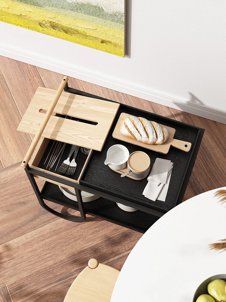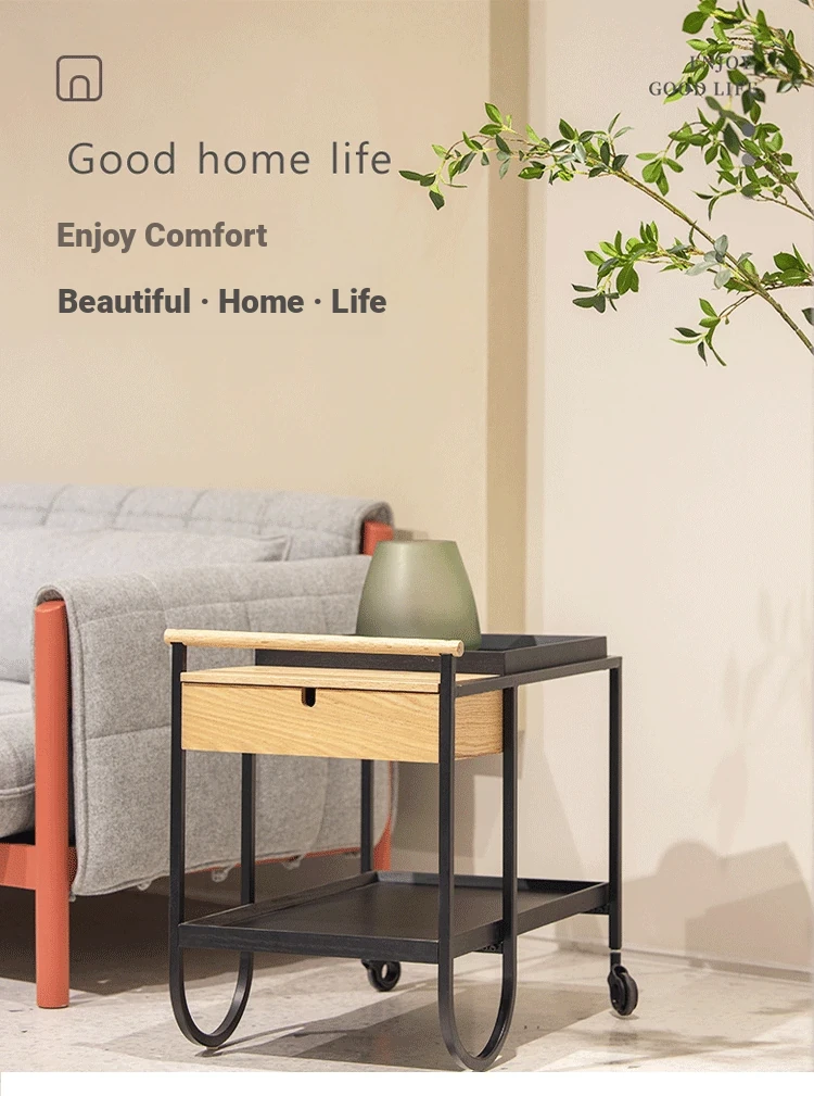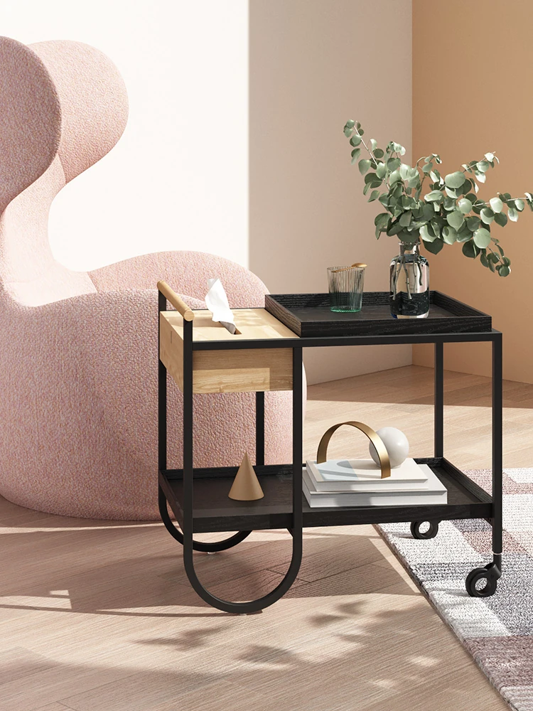 "Nordic Minimalist White Ash Wood Rolling Cart – Elegant Storage Side Table, Sofa End Cabinet, Coffee Table & Versatile Corner Shelf for Modern Living Spaces"