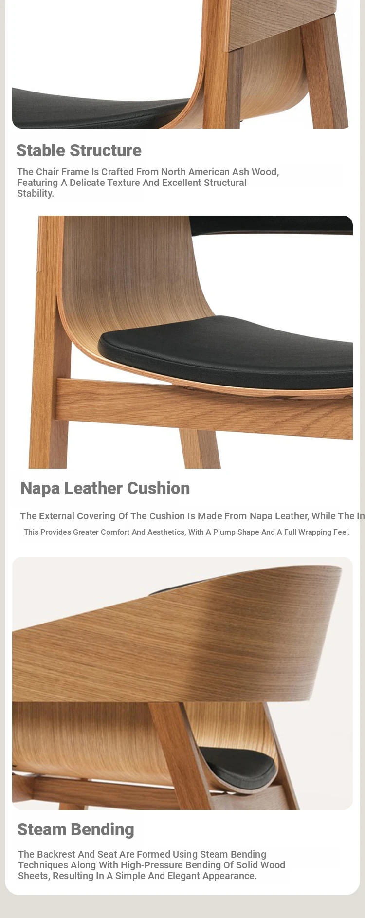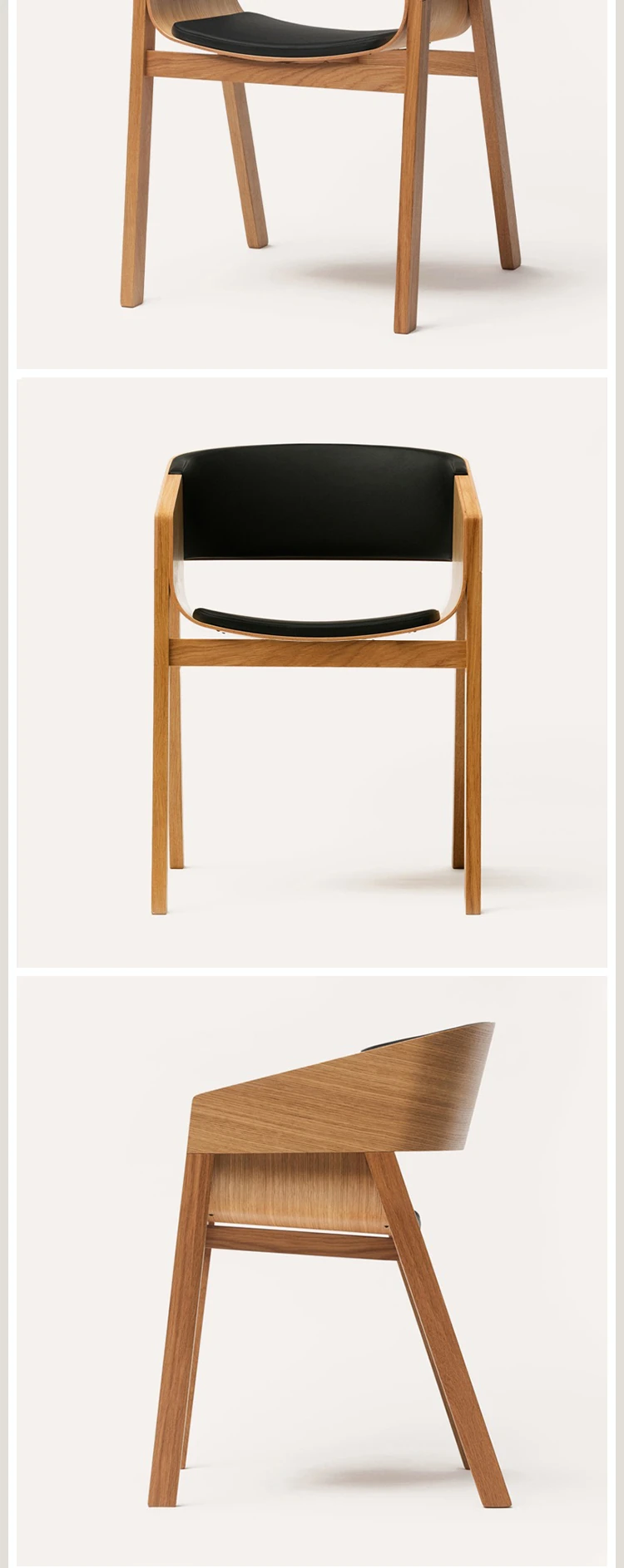 ナチュラルウッド+全包ブラックレザー座面
