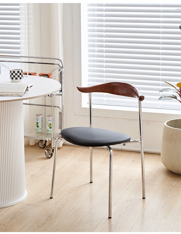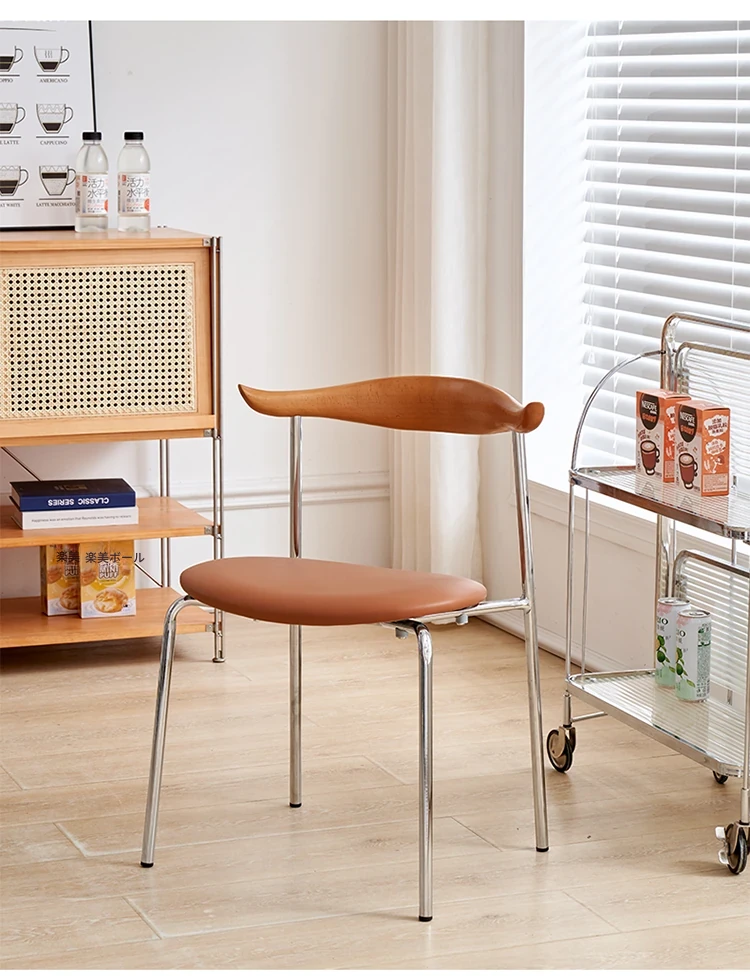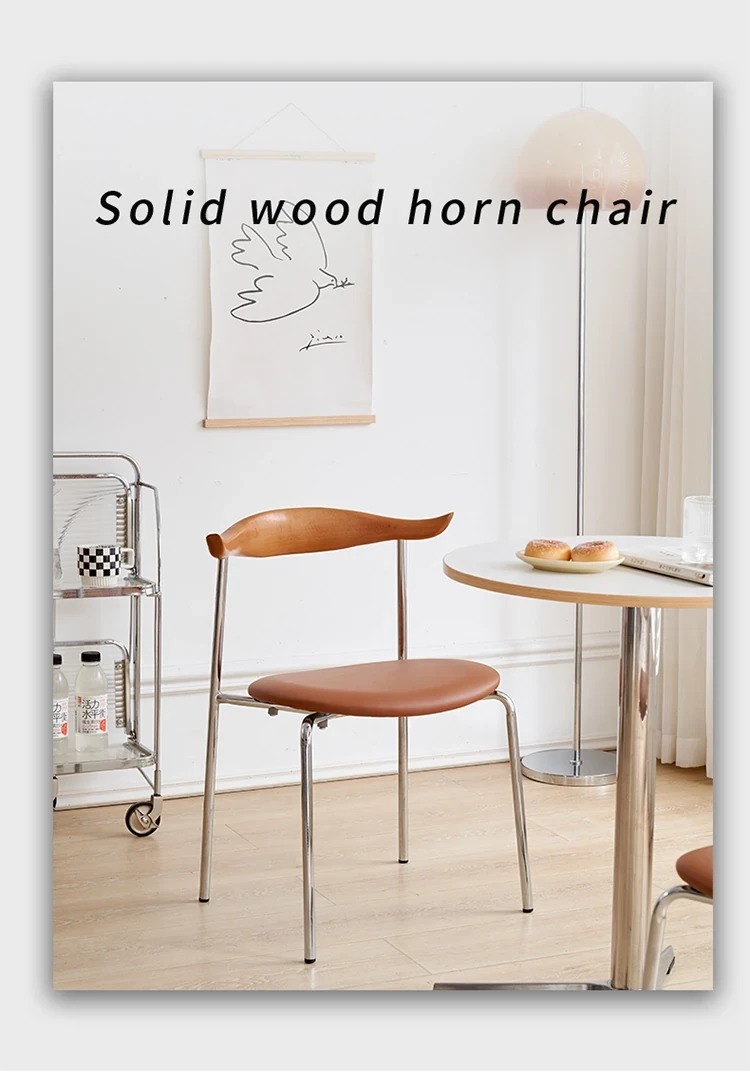 北欧風デザインの無垢材使用!ヴィンテージ感あふれるコーヒーショップスタイルのカウルチェア。背もたれ付きで、化粧椅子や家庭用ダイニングチェアとしても最適。シンプルでモダンなインテリアにぴったりの中古チェアです!