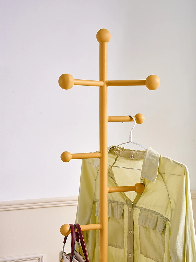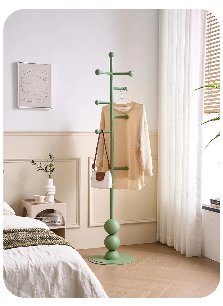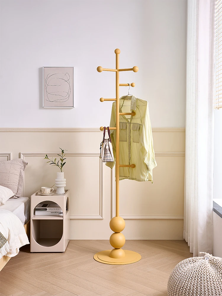 北欧スタイルのステンレス製フロアコートハンガー - シンプルでエレガントなデザイン、寝室やリビングにぴったりの収納ソリューション!軽やかな高級感漂うバウハウス風のコートラックで、毎日のコーディネートをもっと素敵に。