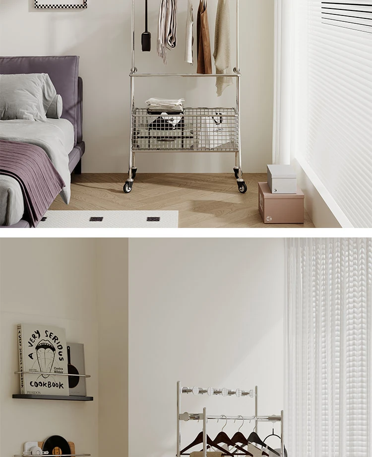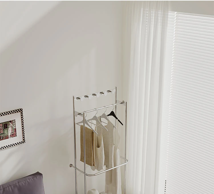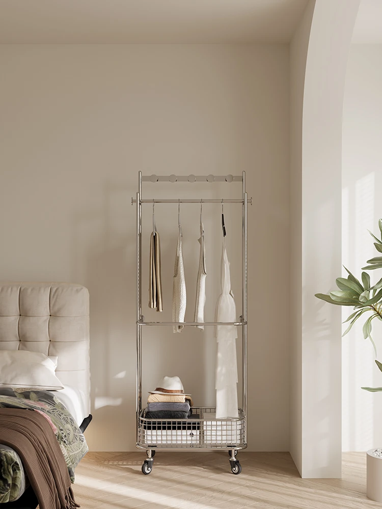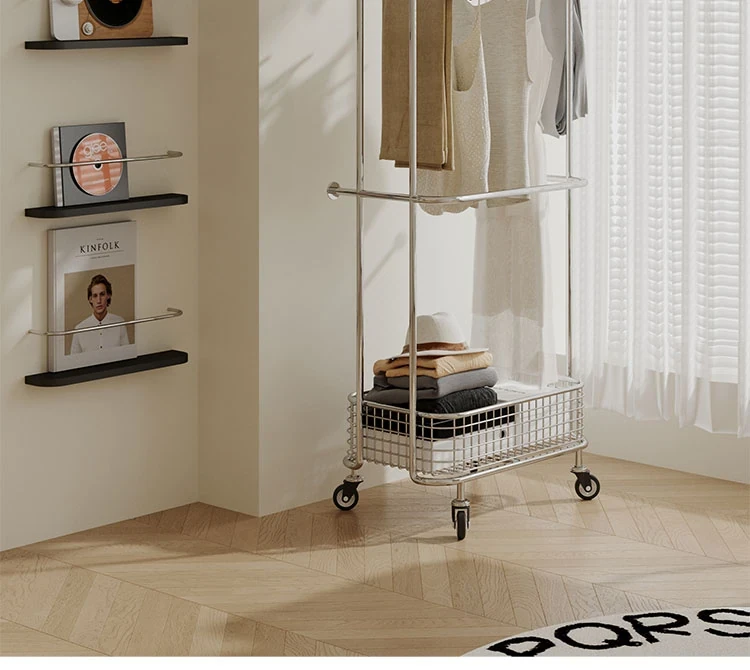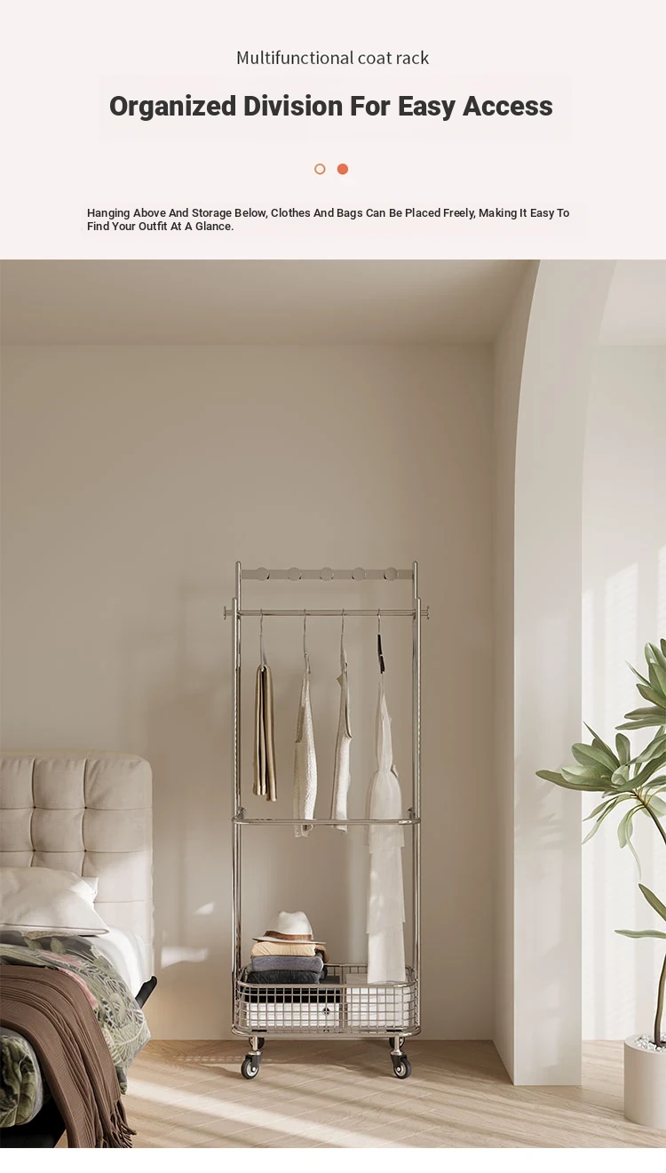 Nordic Style Freestanding Clothes Rack for Bedroom – Mobile Luxury Corner Coat Stand and Storage Organizer for Elegant Clothing Display