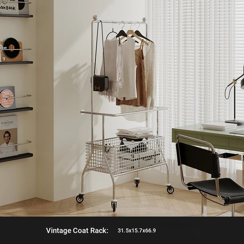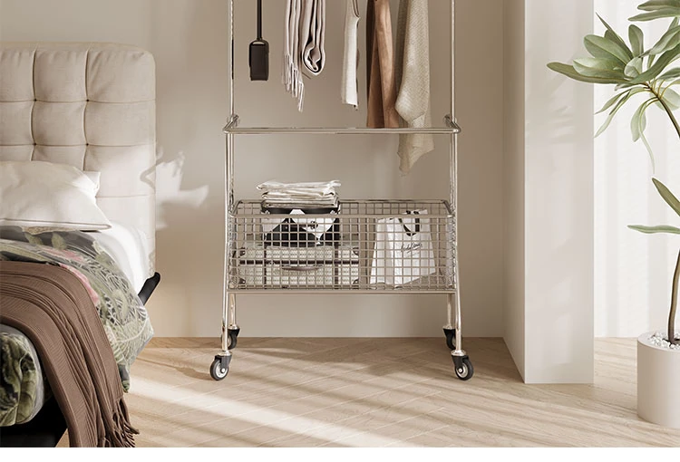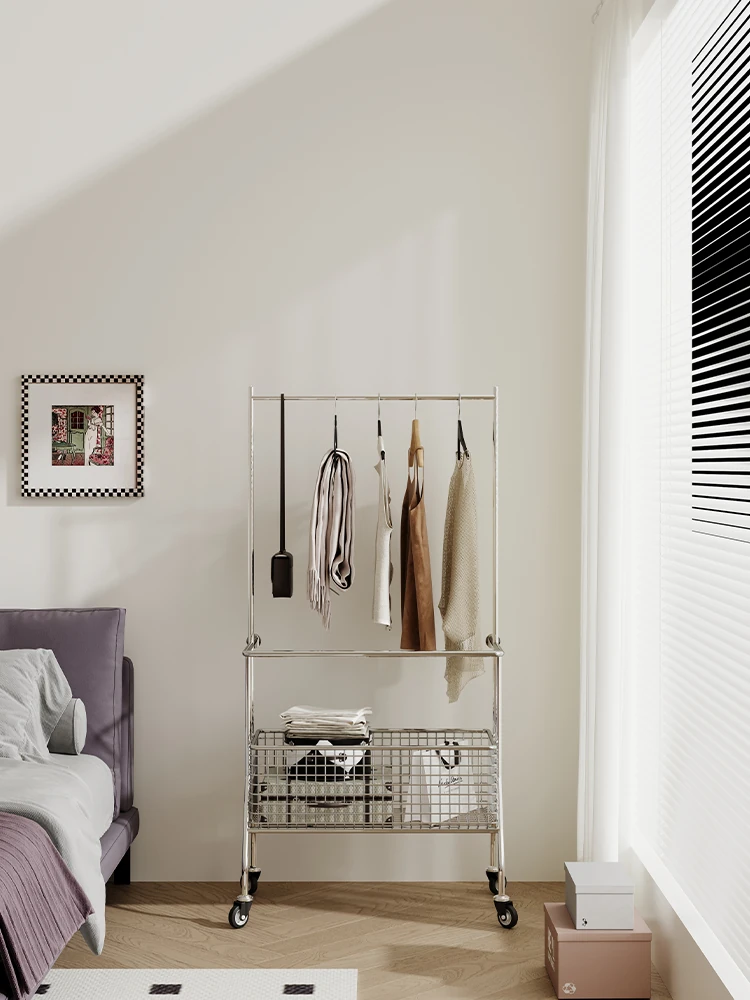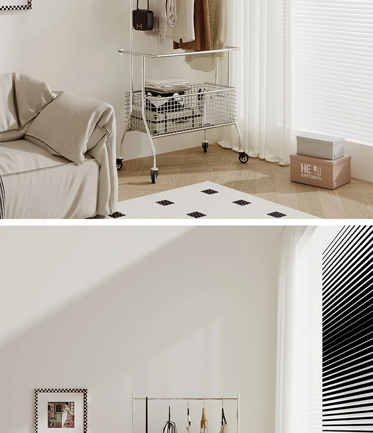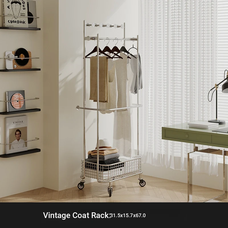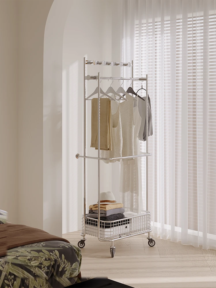 Nordic Style Freestanding Clothes Rack for Bedroom – Mobile Luxury Corner Coat Stand and Storage Organizer for Elegant Clothing Display