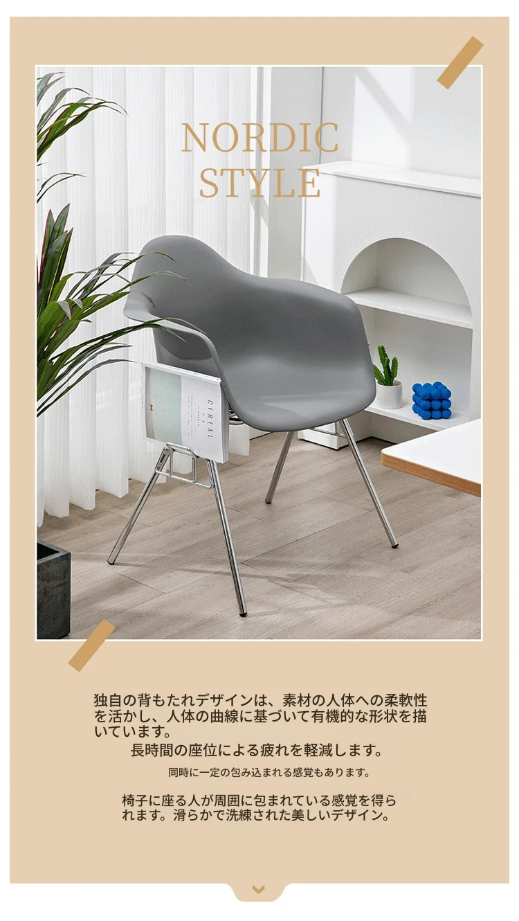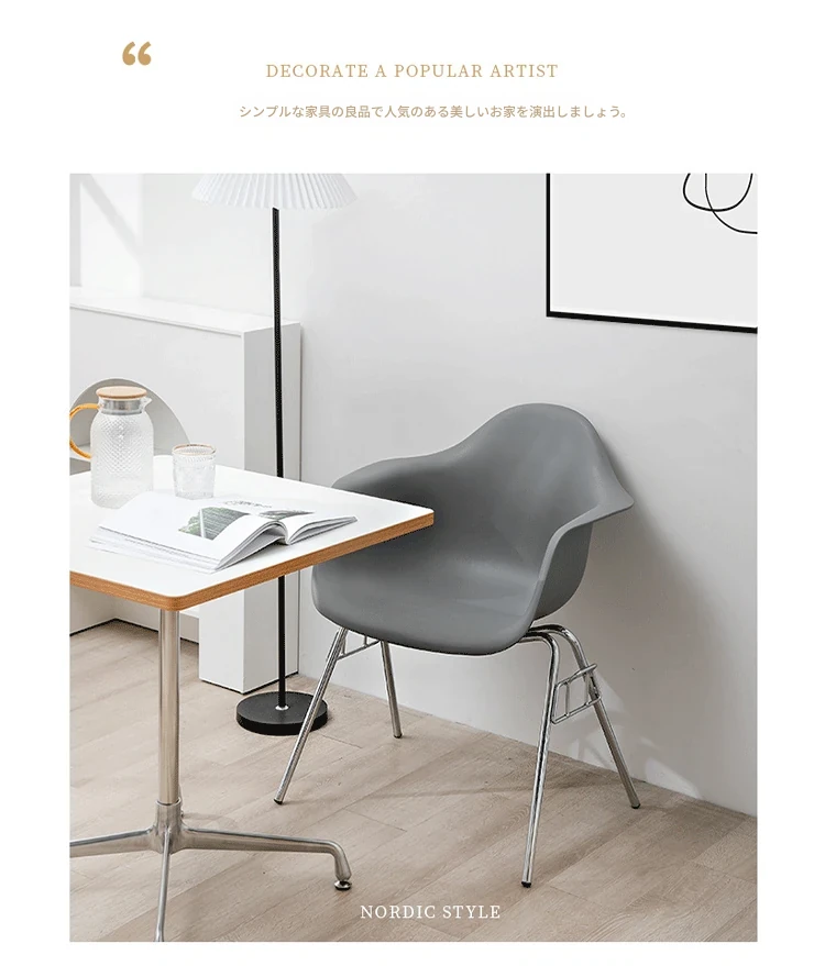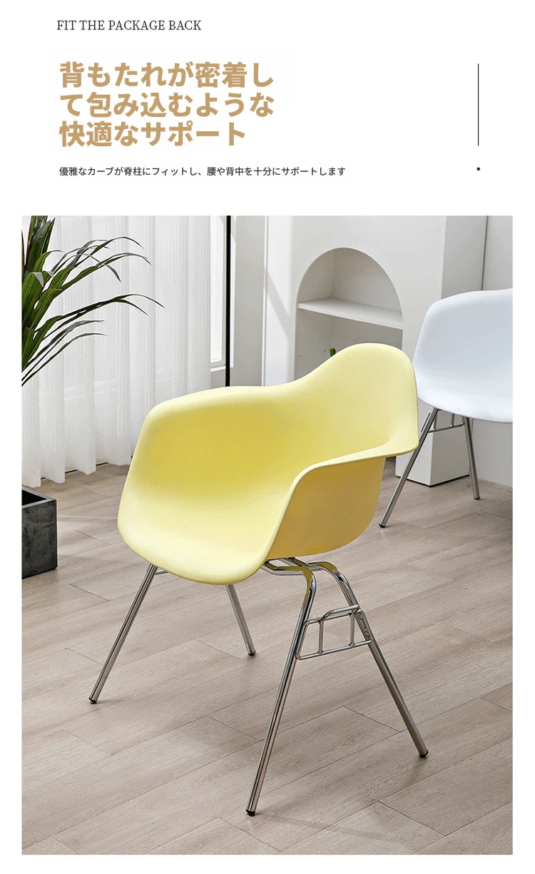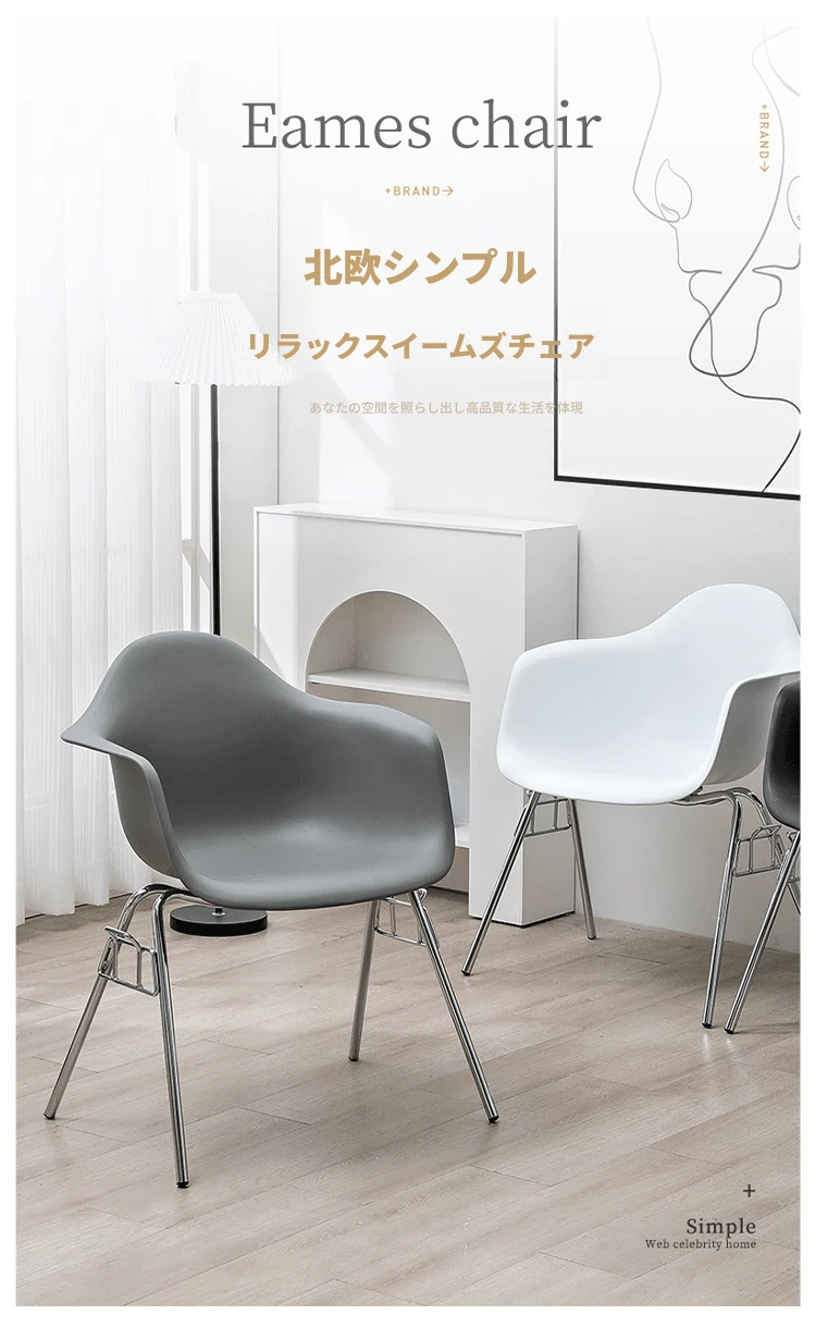 北欧風インフルエンサーおすすめ!イームズデザインの中古ダイニングチェア。おしゃれなアームチェアは、リビングやオフィスで活躍するシンプル&洗練された背もたれ付き。