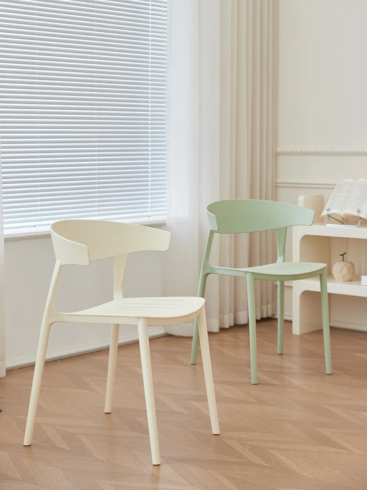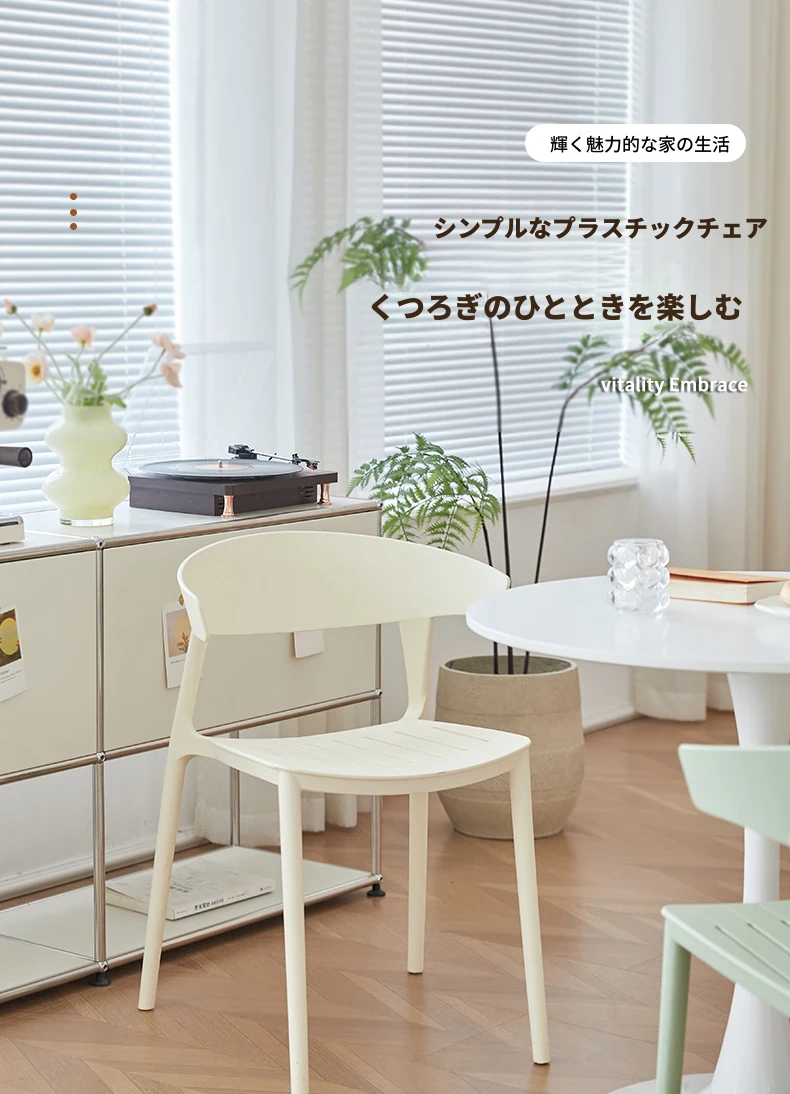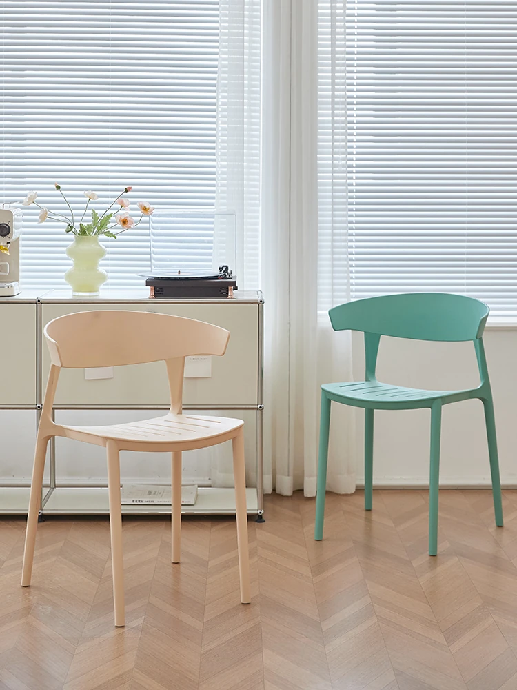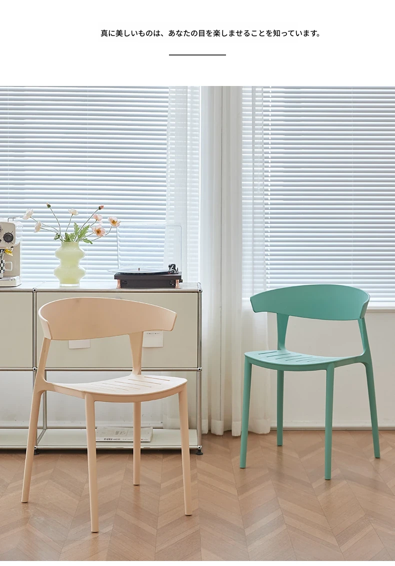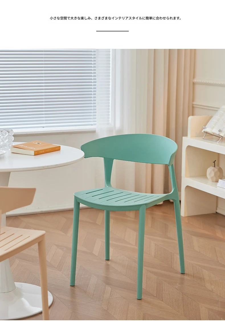 インスタ映え!北欧風マカロンカラーのリビングチェア。シンプルでスタイリッシュなデザイン、家庭用にぴったりなプラスチック製。小型の部屋にも最適なリラックス背もたれ付き椅子!