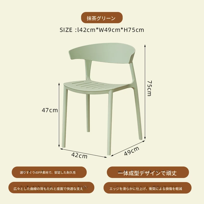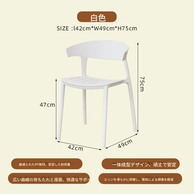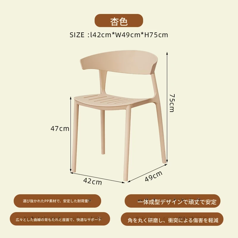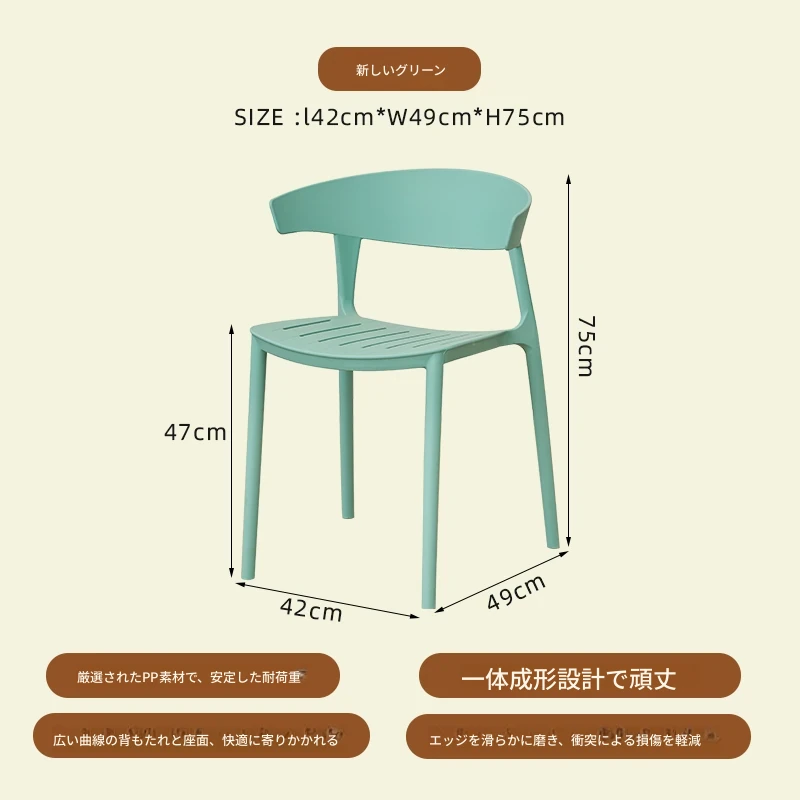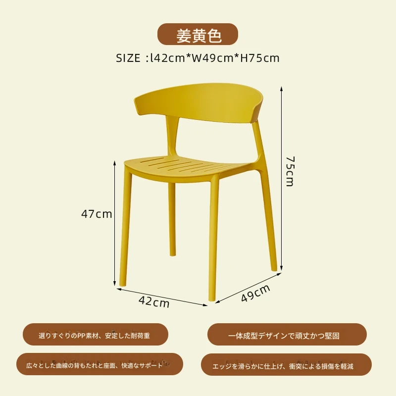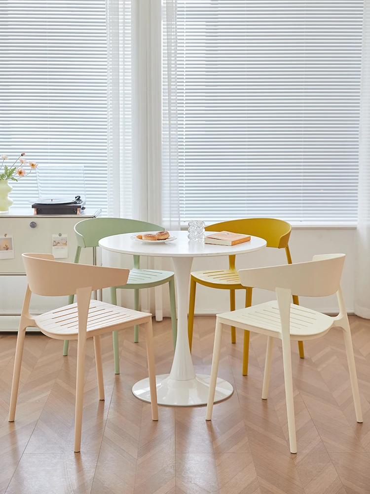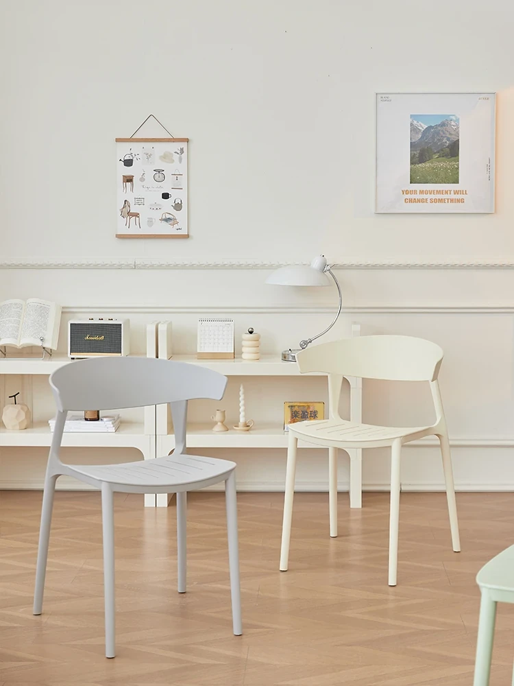 インスタ映え!北欧風マカロンカラーのリビングチェア。シンプルでスタイリッシュなデザイン、家庭用にぴったりなプラスチック製。小型の部屋にも最適なリラックス背もたれ付き椅子!