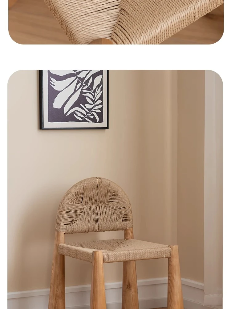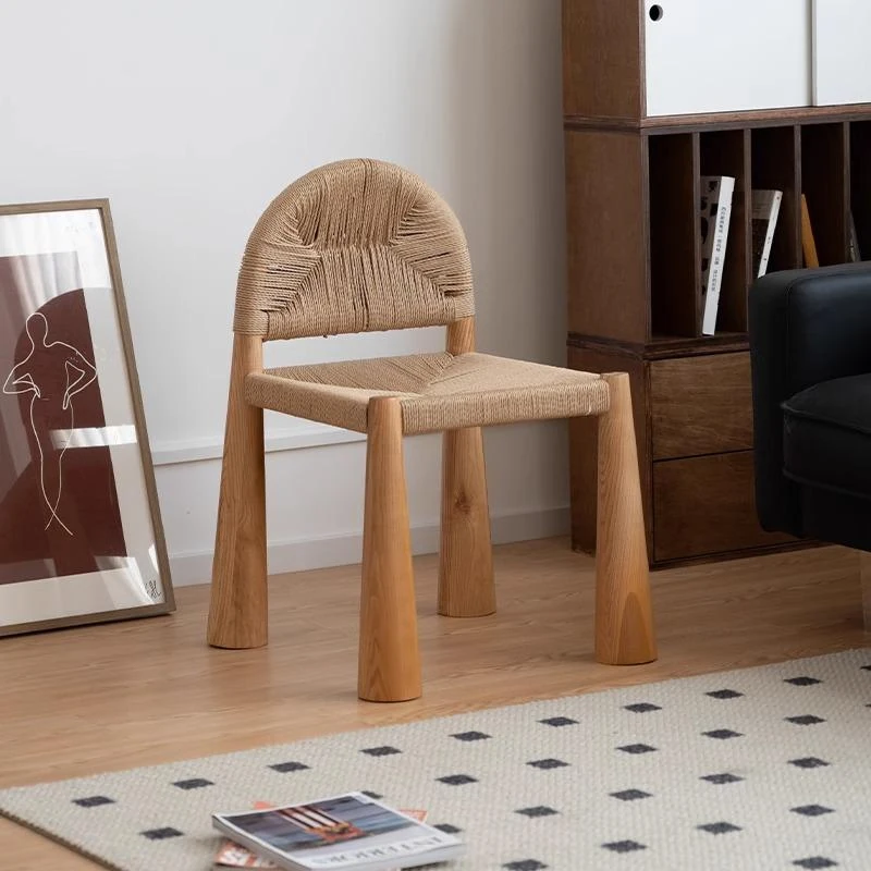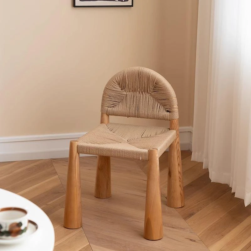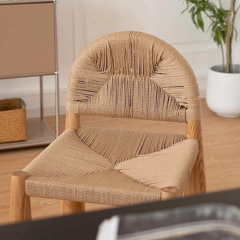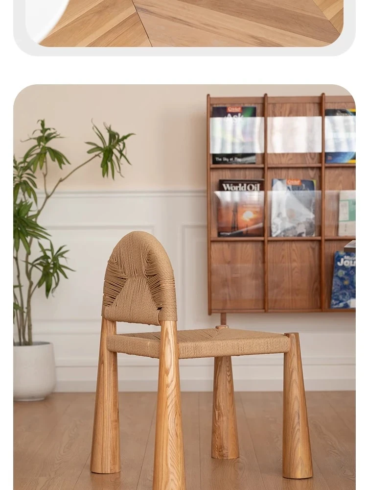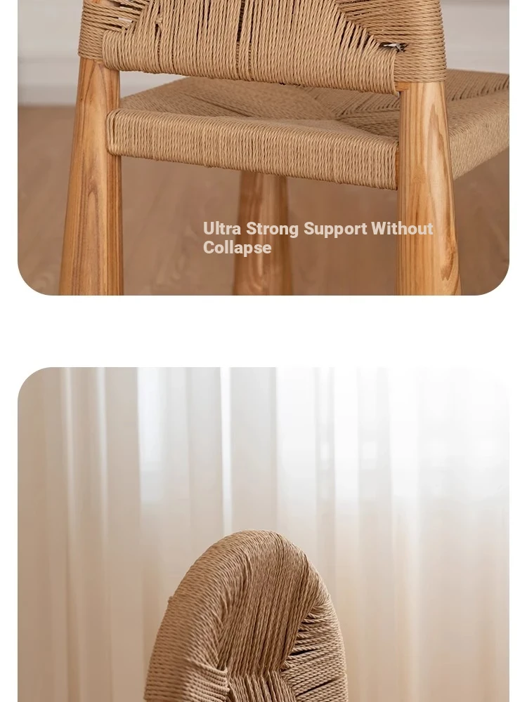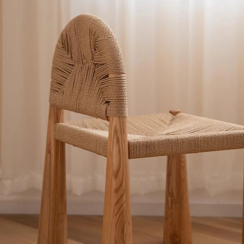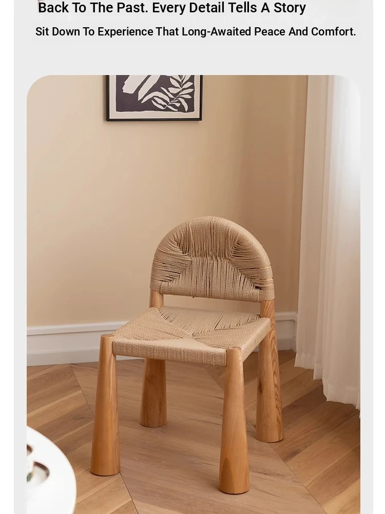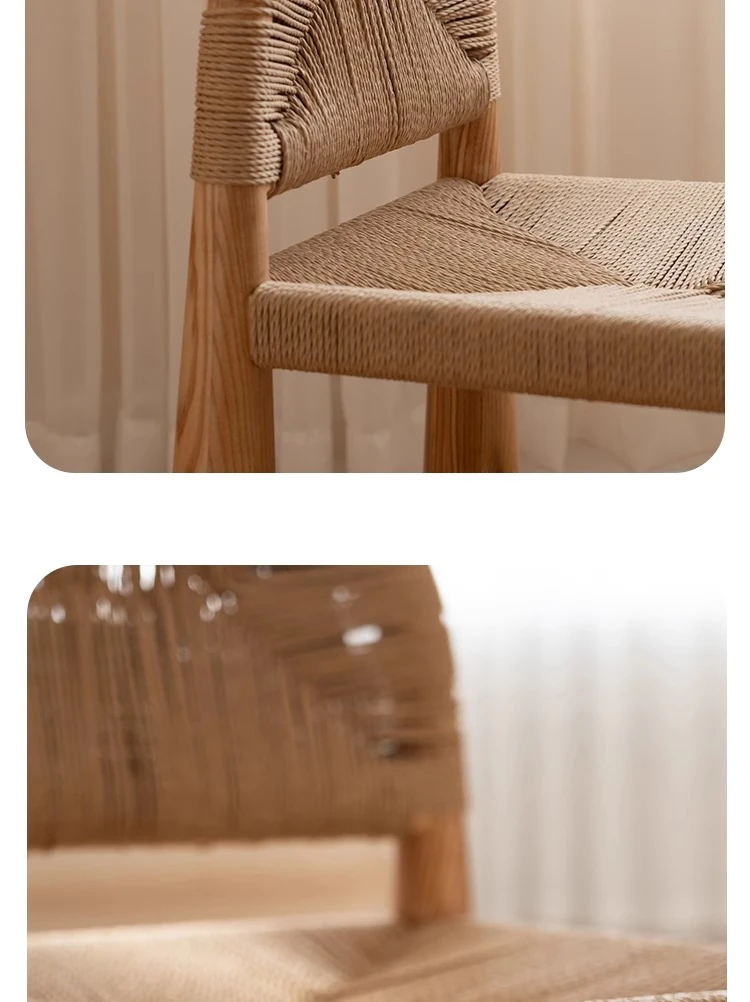 無垢材のヴィンテージ風ダイニングチェア|侘寂の美しさが漂うカフェや民宿にぴったり|人気の草縄デザイン|おしゃれで居心地の良い空間を演出する中古ヴィンテージスタイルの椅子