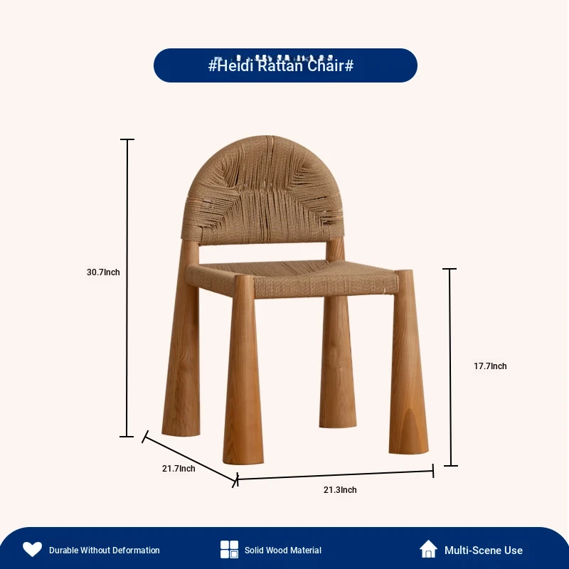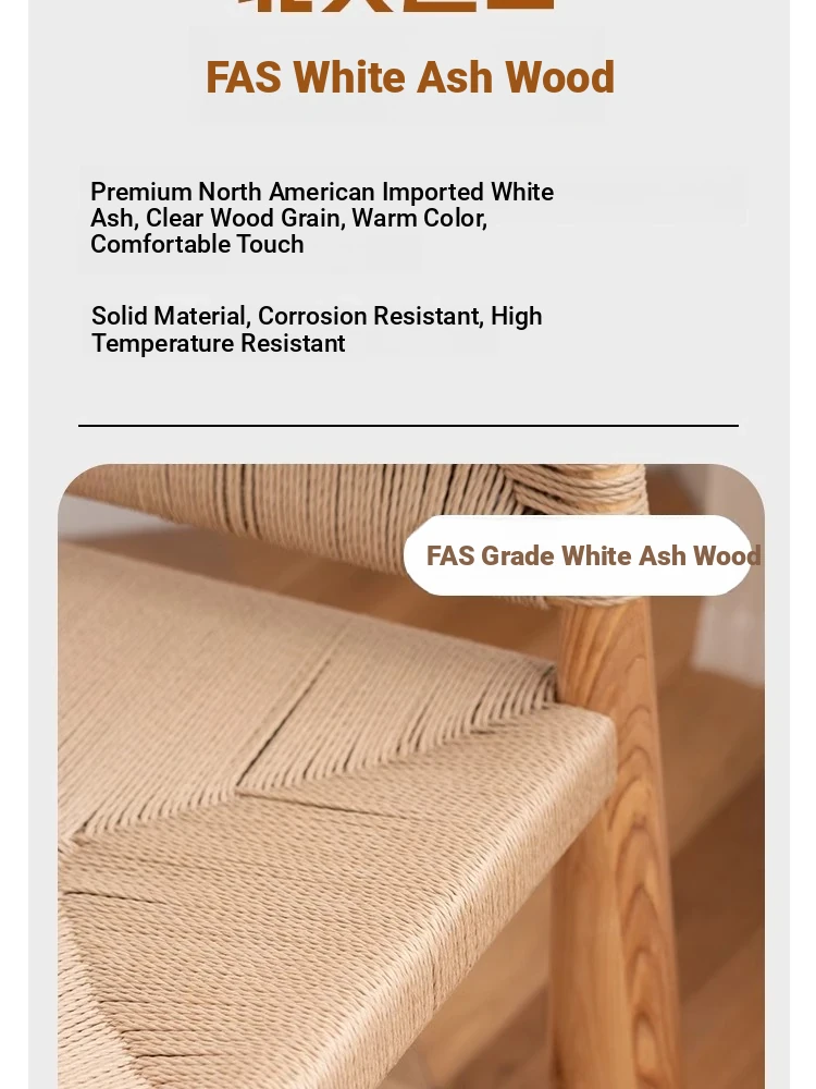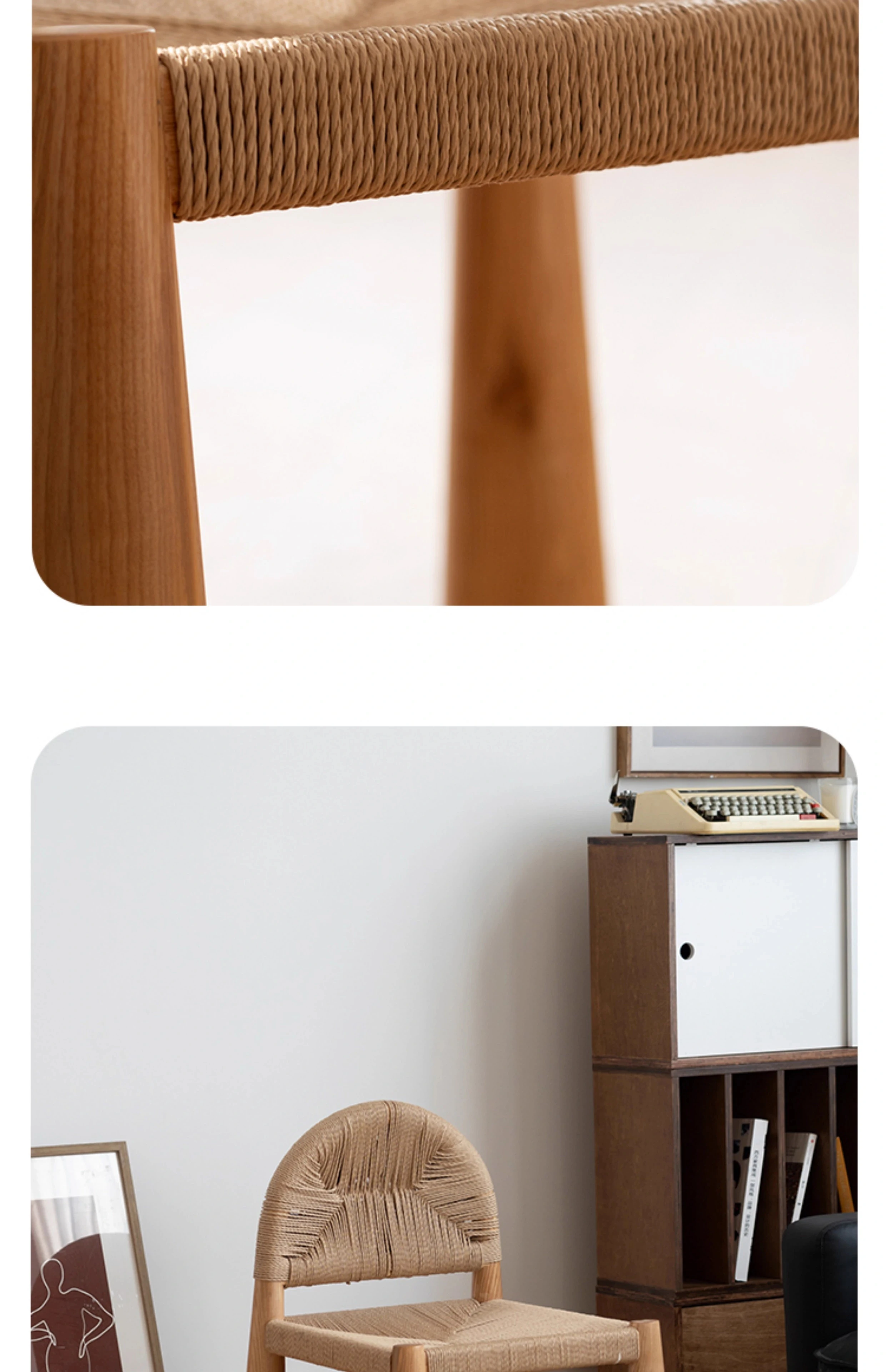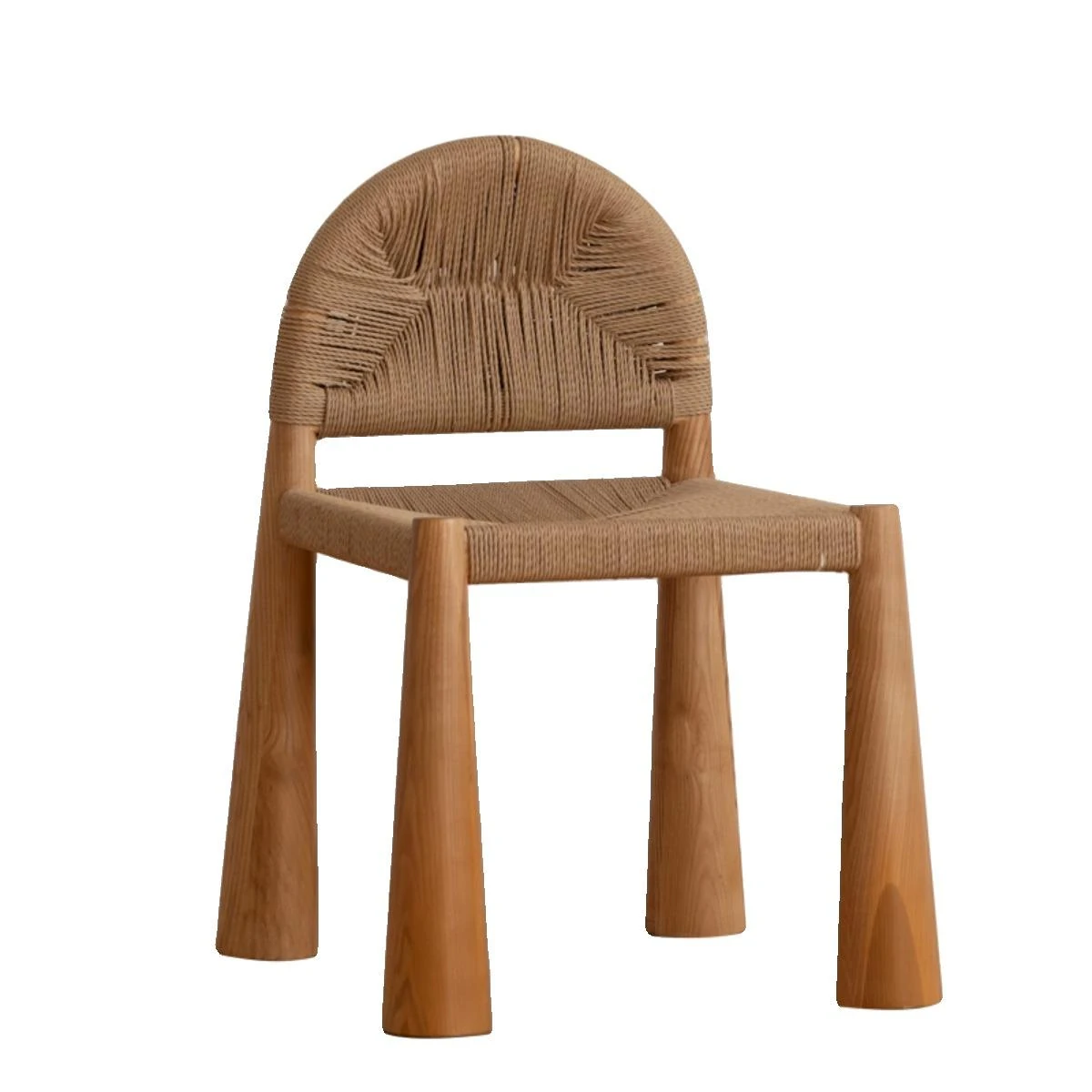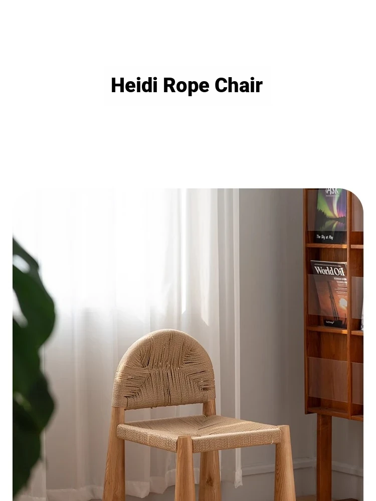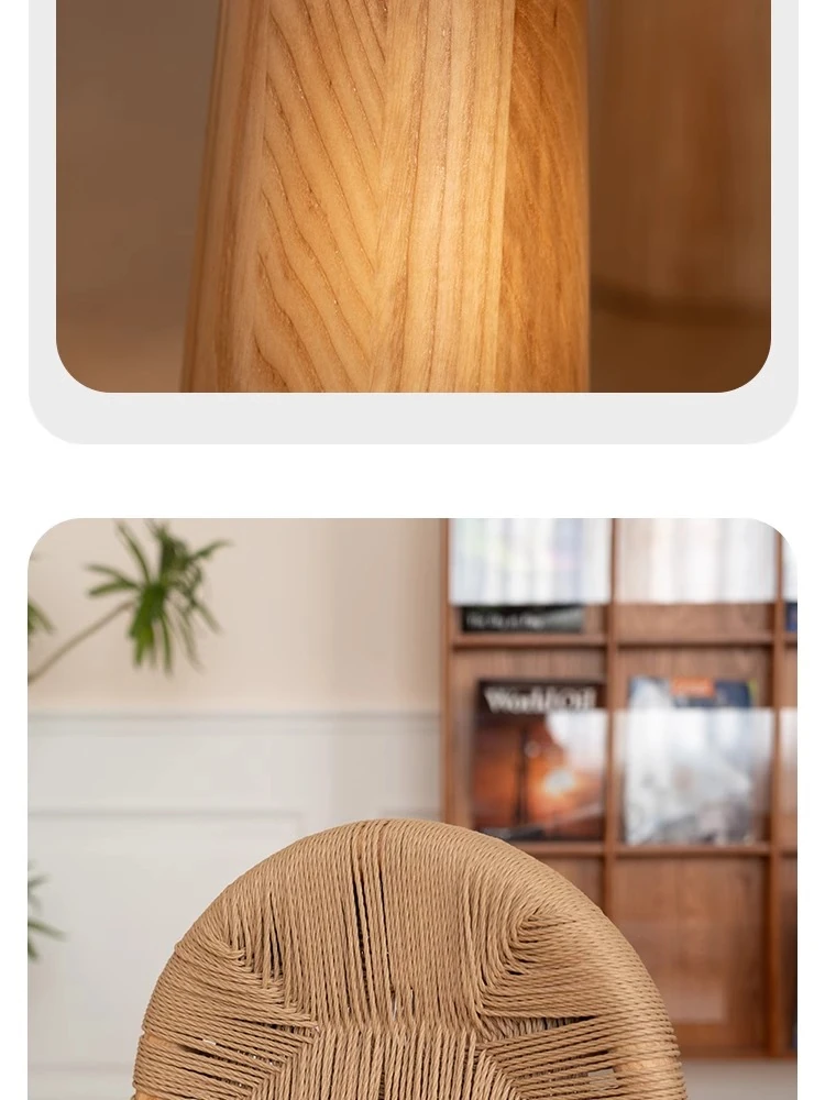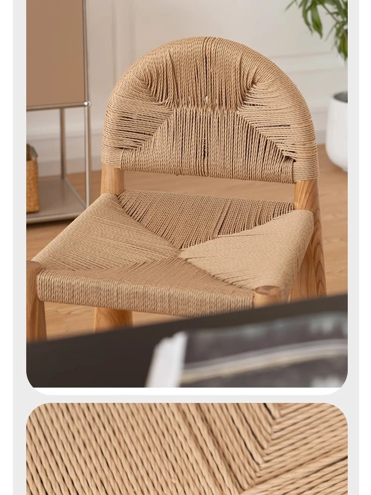 無垢材のヴィンテージ風ダイニングチェア|侘寂の美しさが漂うカフェや民宿にぴったり|人気の草縄デザイン|おしゃれで居心地の良い空間を演出する中古ヴィンテージスタイルの椅子