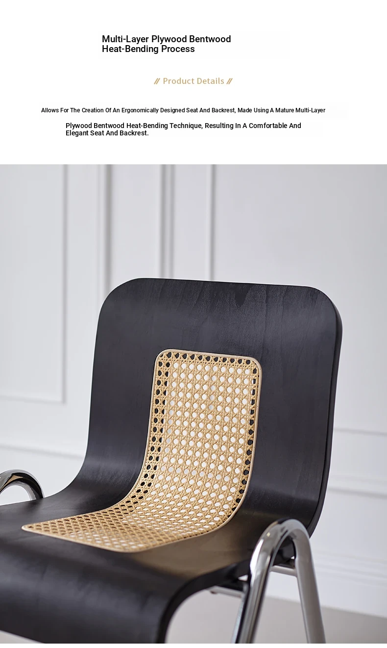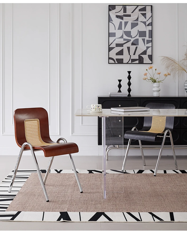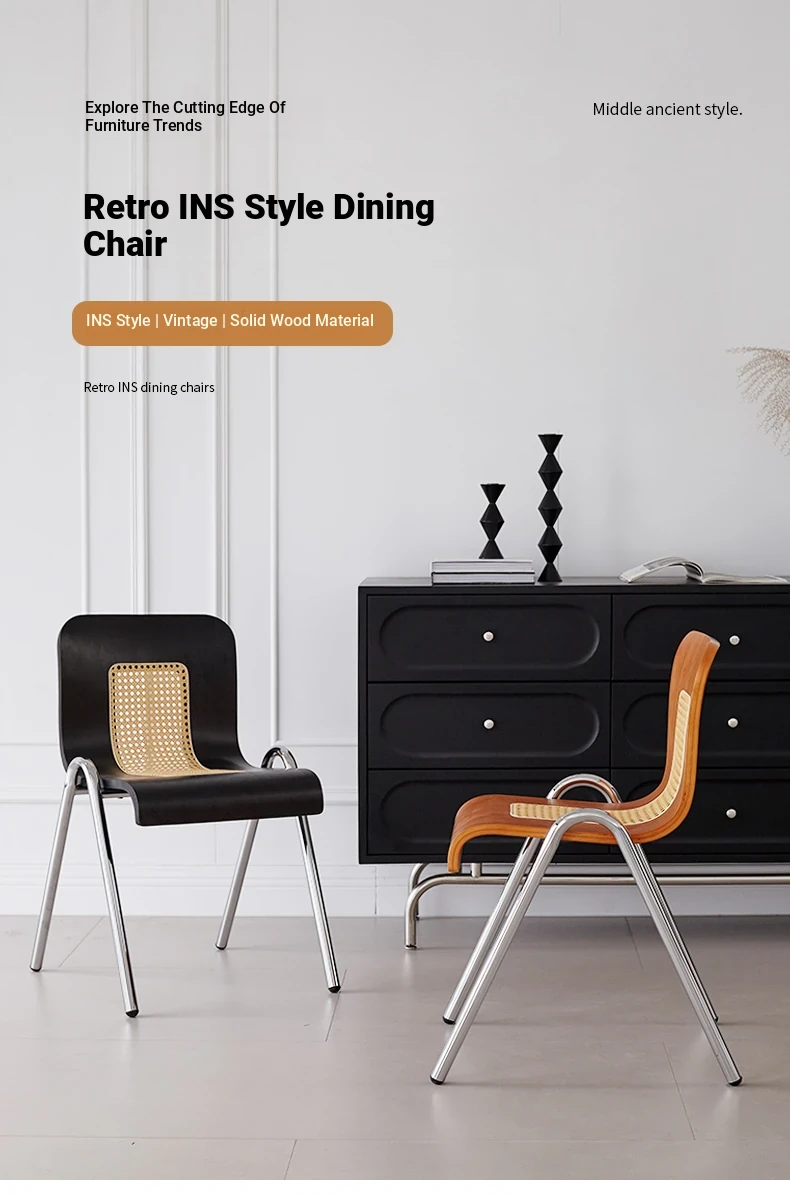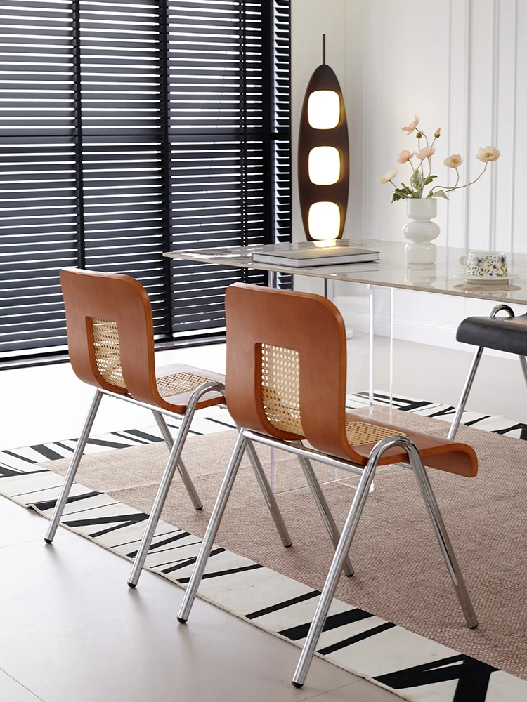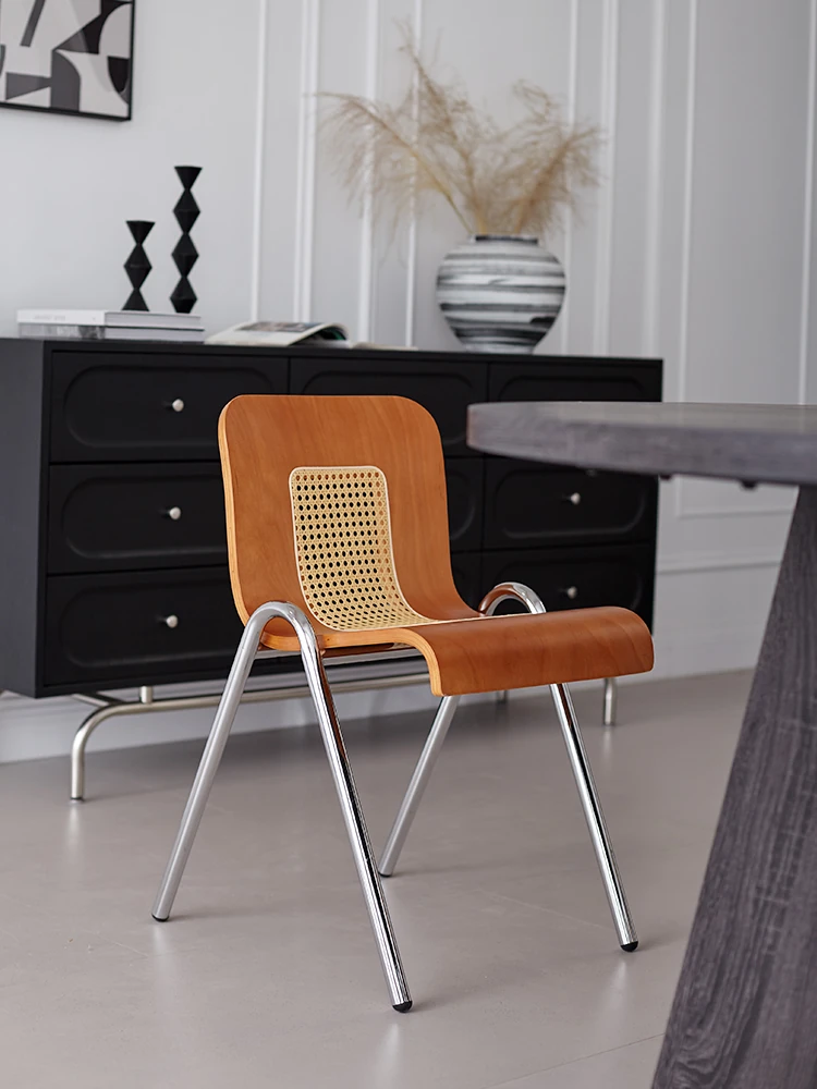 Stylish Vintage Rattan Dining Chair - Designer Wooden Backrest for Home Use, Embracing Wabi-Sabi Aesthetics, Perfect for an Elegant Touch to Your Dining Table