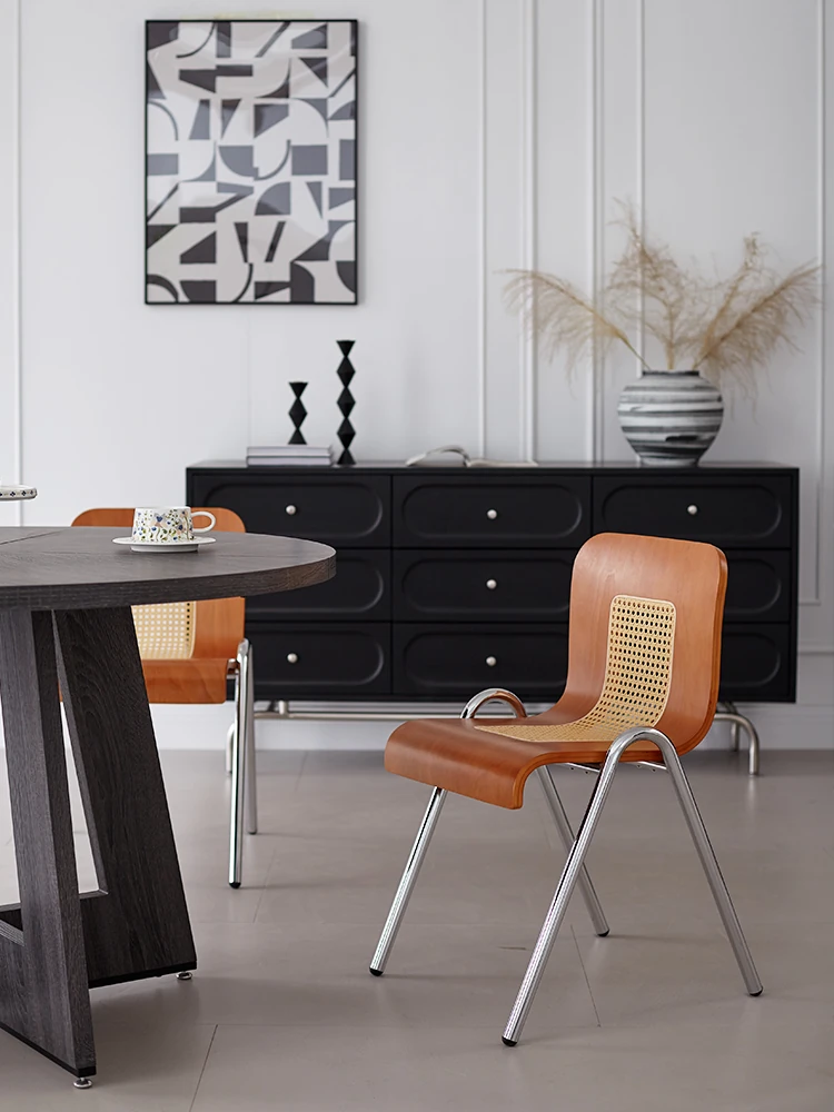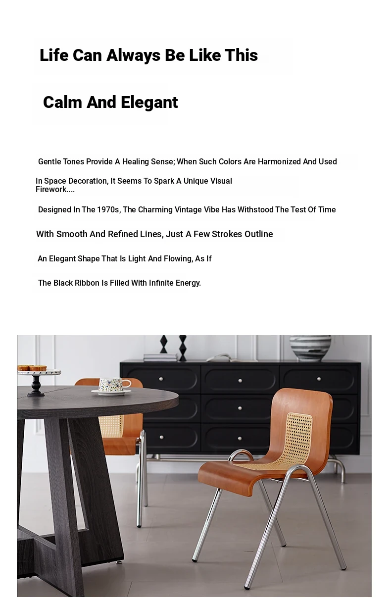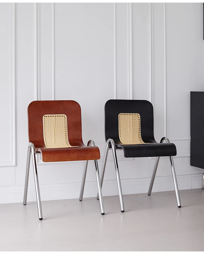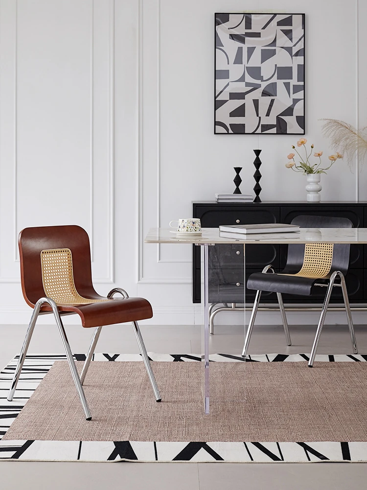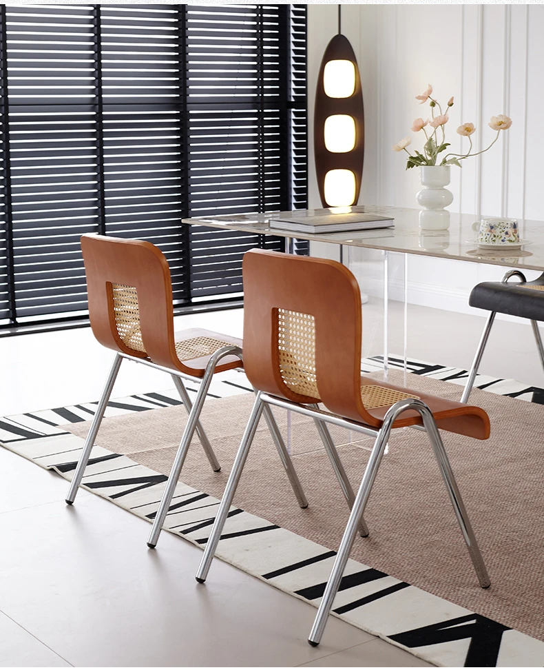Stylish Vintage Rattan Dining Chair - Designer Wooden Backrest for Home Use, Embracing Wabi-Sabi Aesthetics, Perfect for an Elegant Touch to Your Dining Table