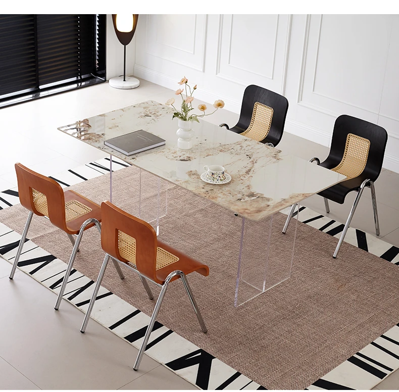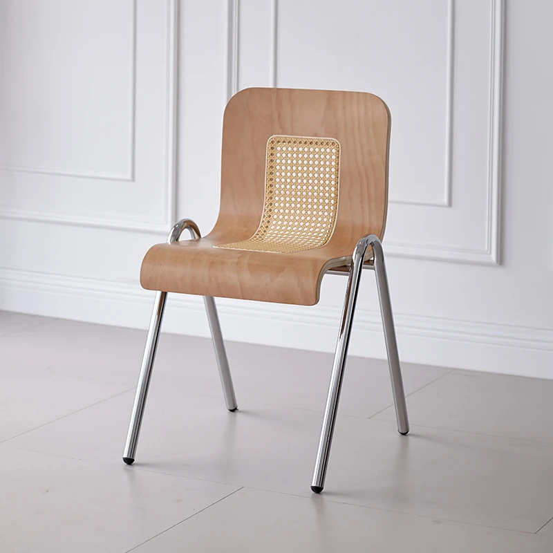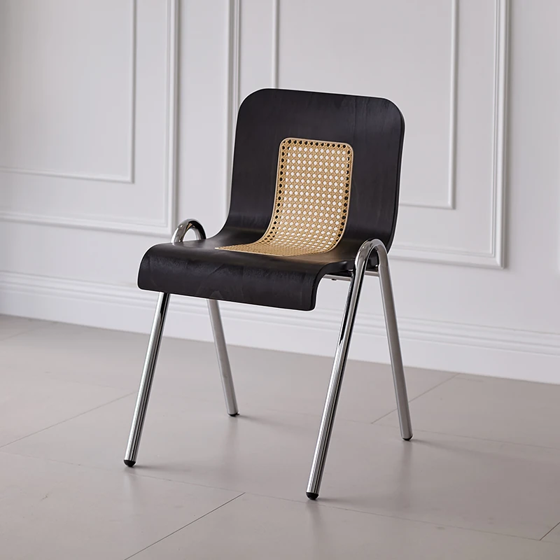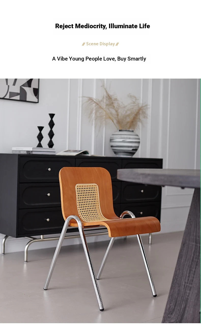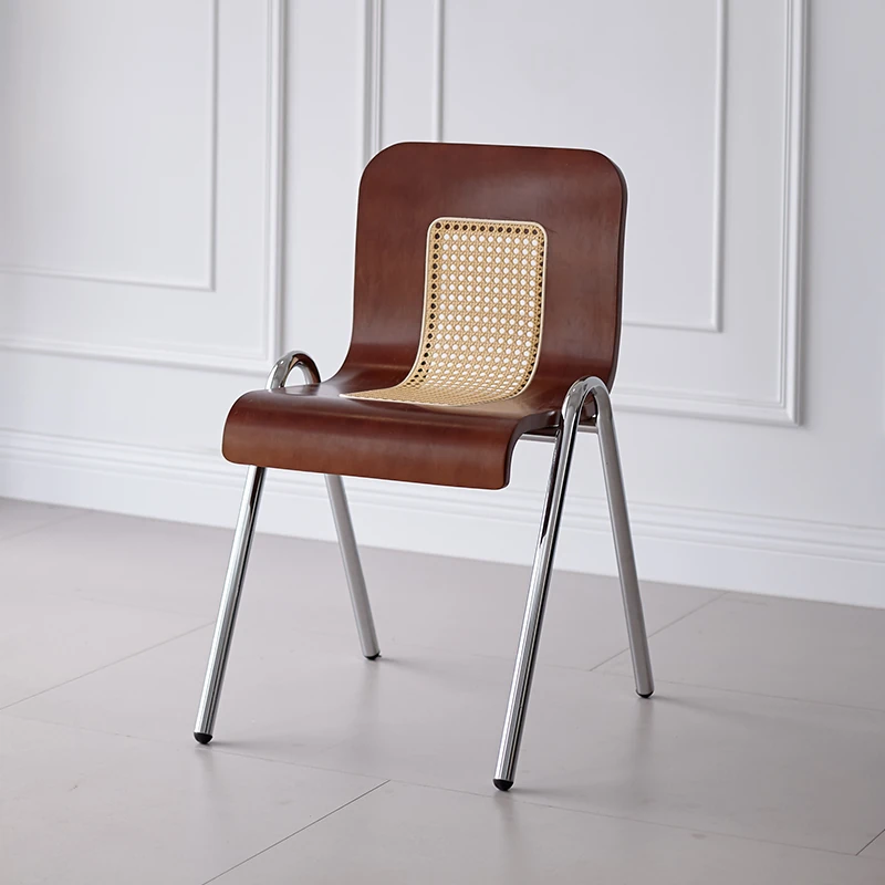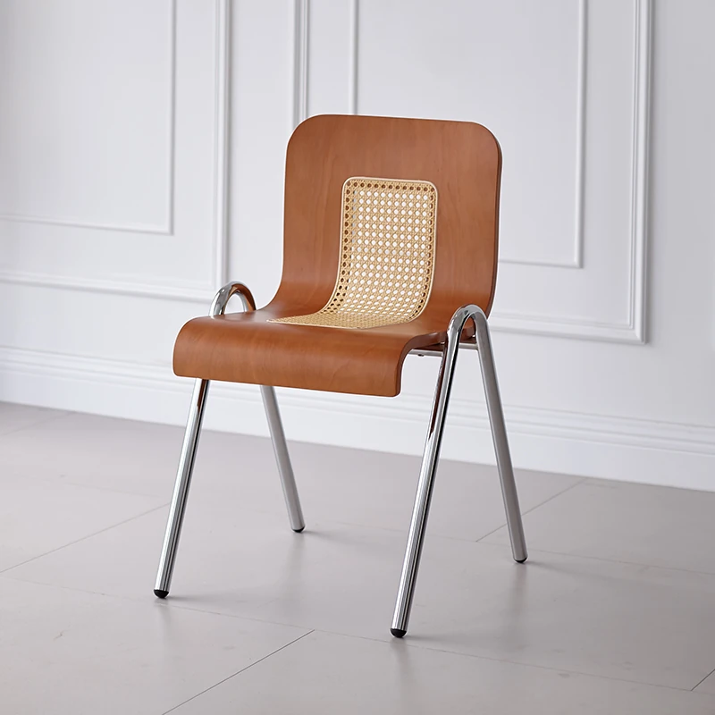 Stylish Vintage Rattan Dining Chair - Designer Wooden Backrest for Home Use, Embracing Wabi-Sabi Aesthetics, Perfect for an Elegant Touch to Your Dining Table