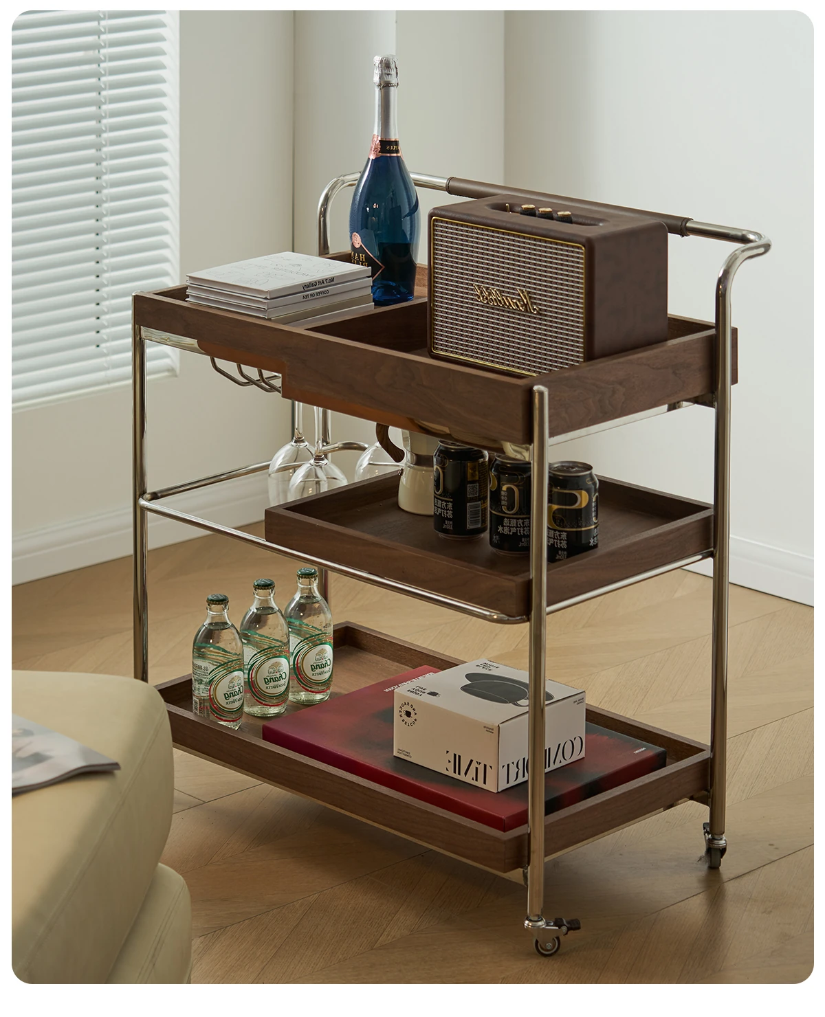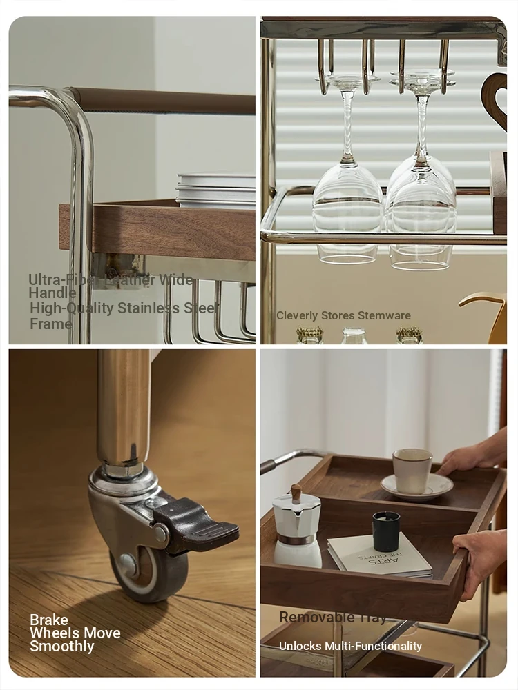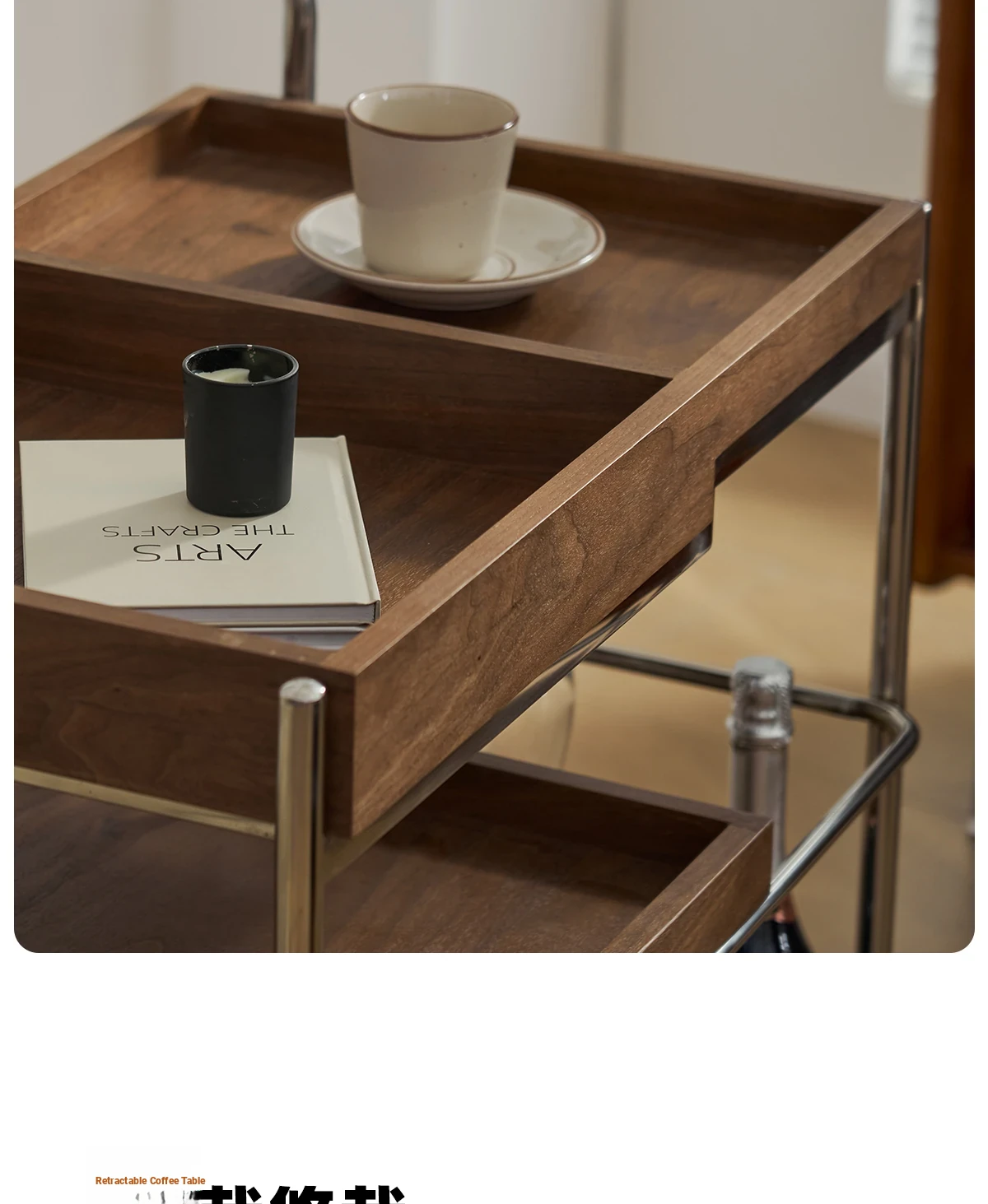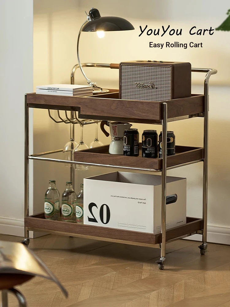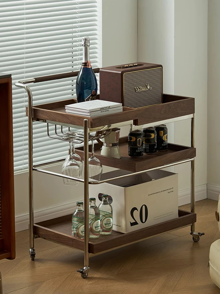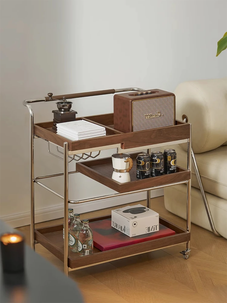 実木製のリビング用可動式ソファサイドテーブル - レトロなキャスター付きサイドキャビネット、便利なお茶テーブルとしても使用可能!どんなインテリアにもぴったりのスタイリッシュデザインで、空間を演出します。