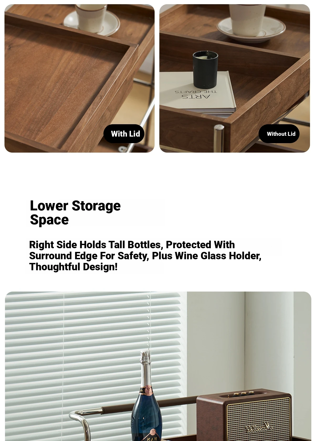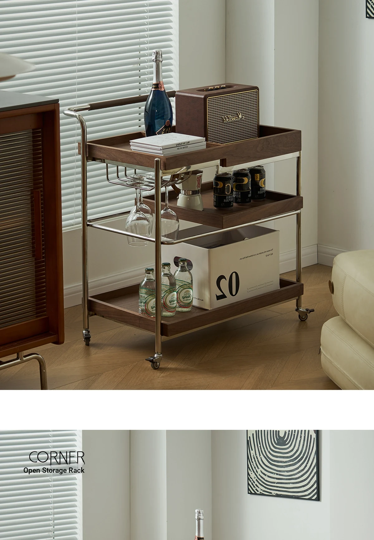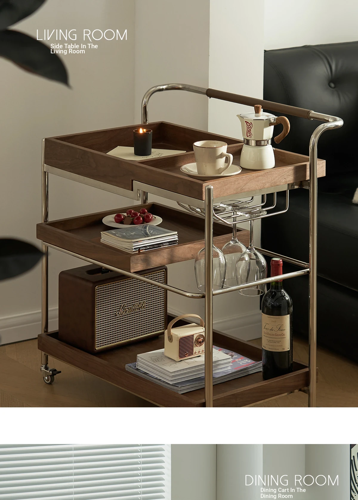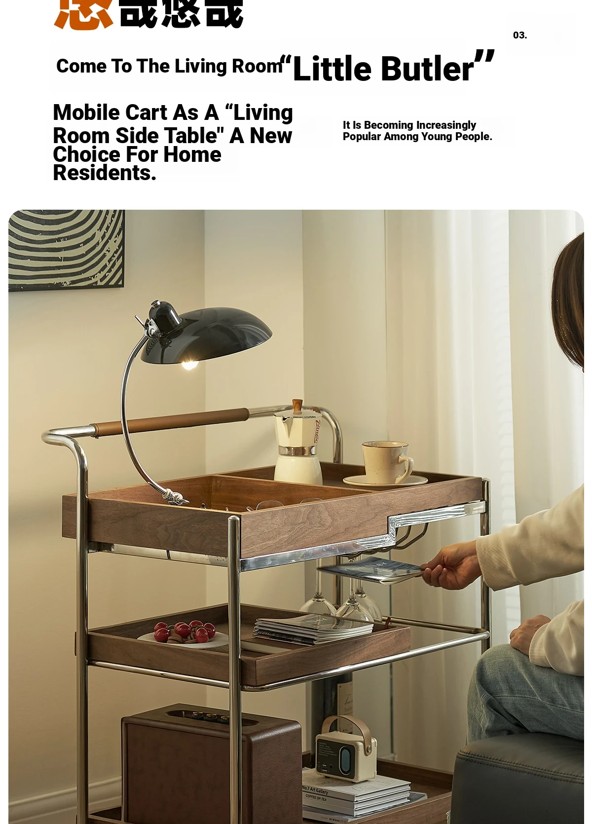 実木製のリビング用可動式ソファサイドテーブル - レトロなキャスター付きサイドキャビネット、便利なお茶テーブルとしても使用可能!どんなインテリアにもぴったりのスタイリッシュデザインで、空間を演出します。