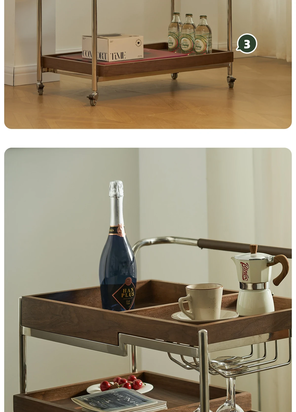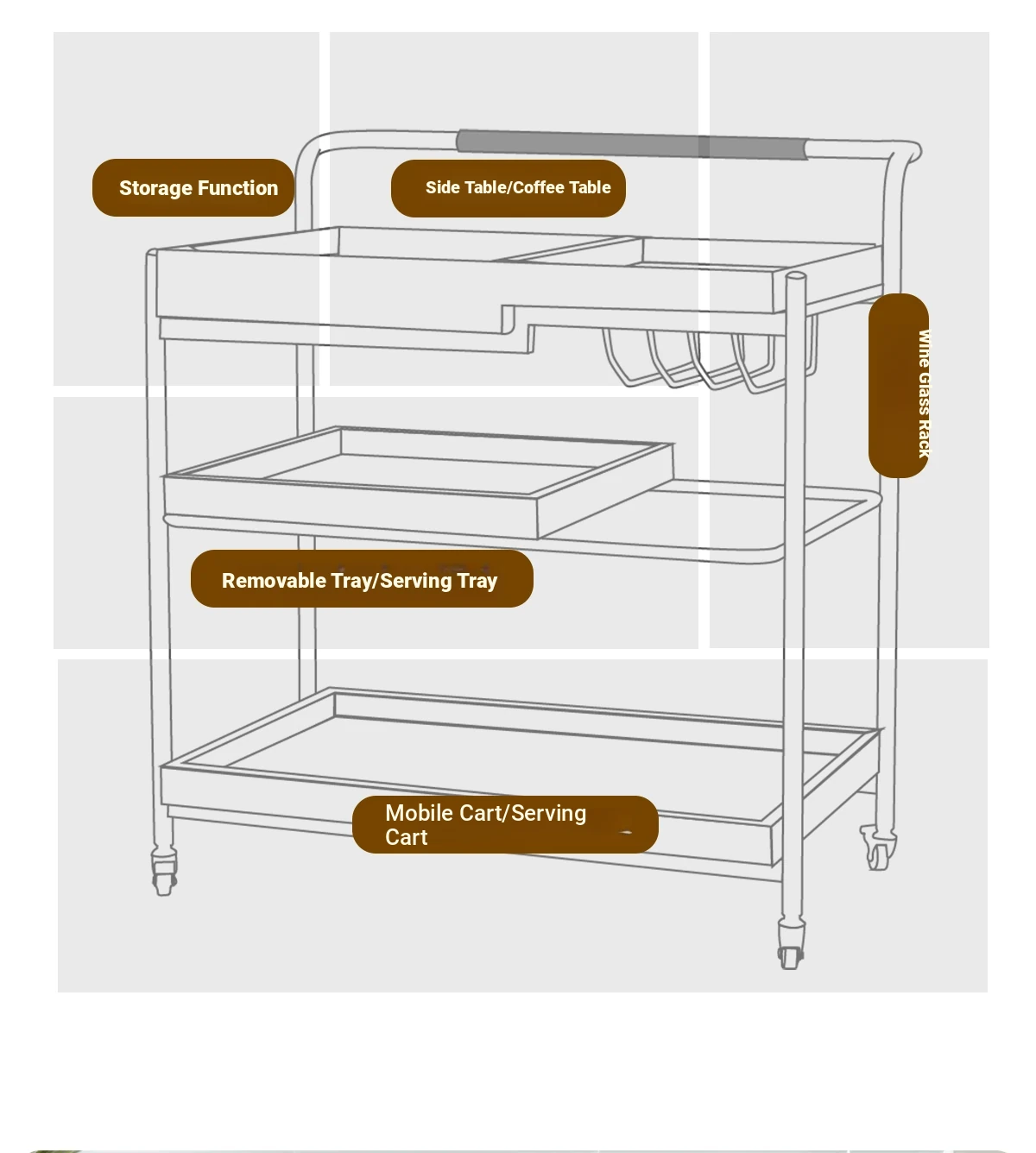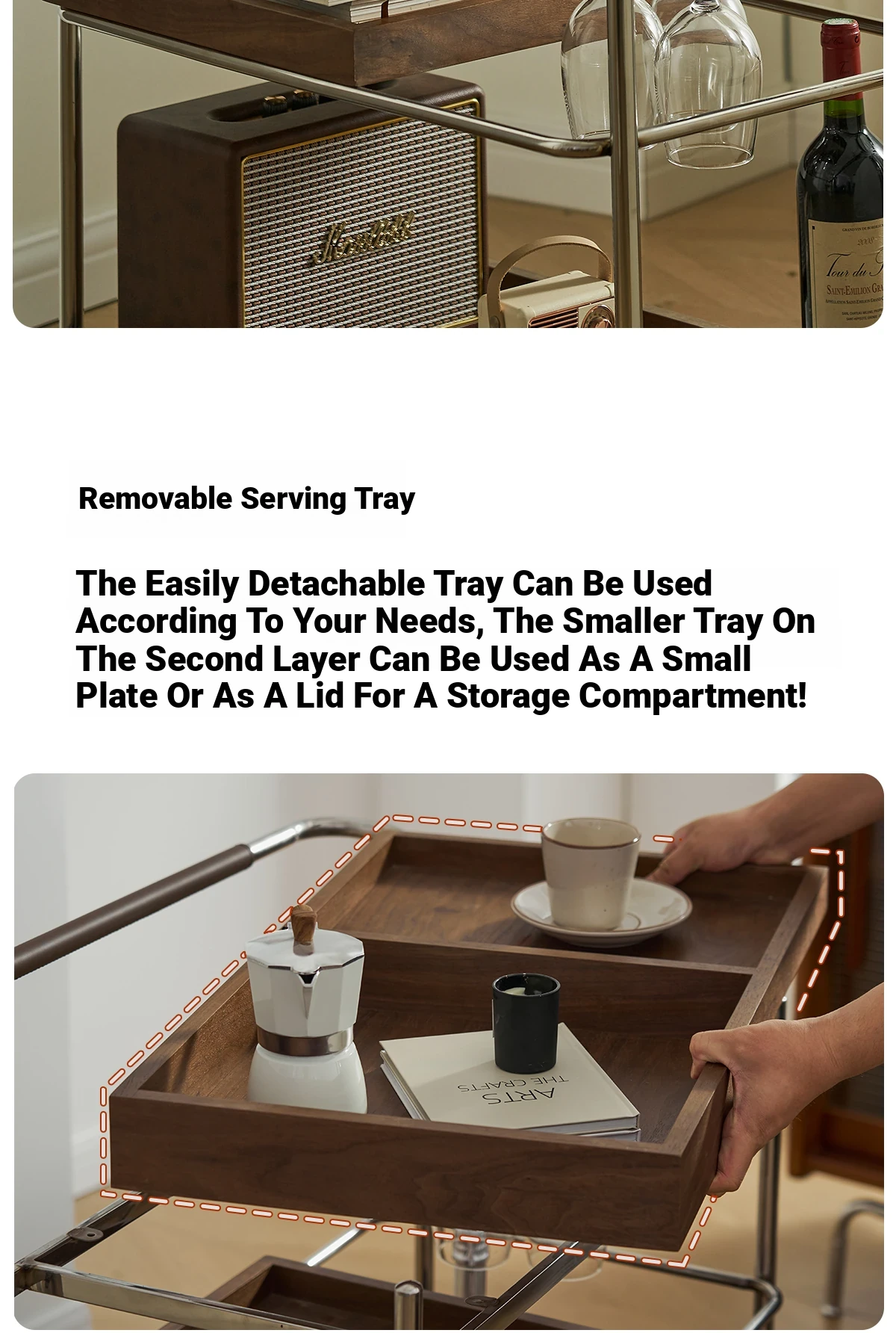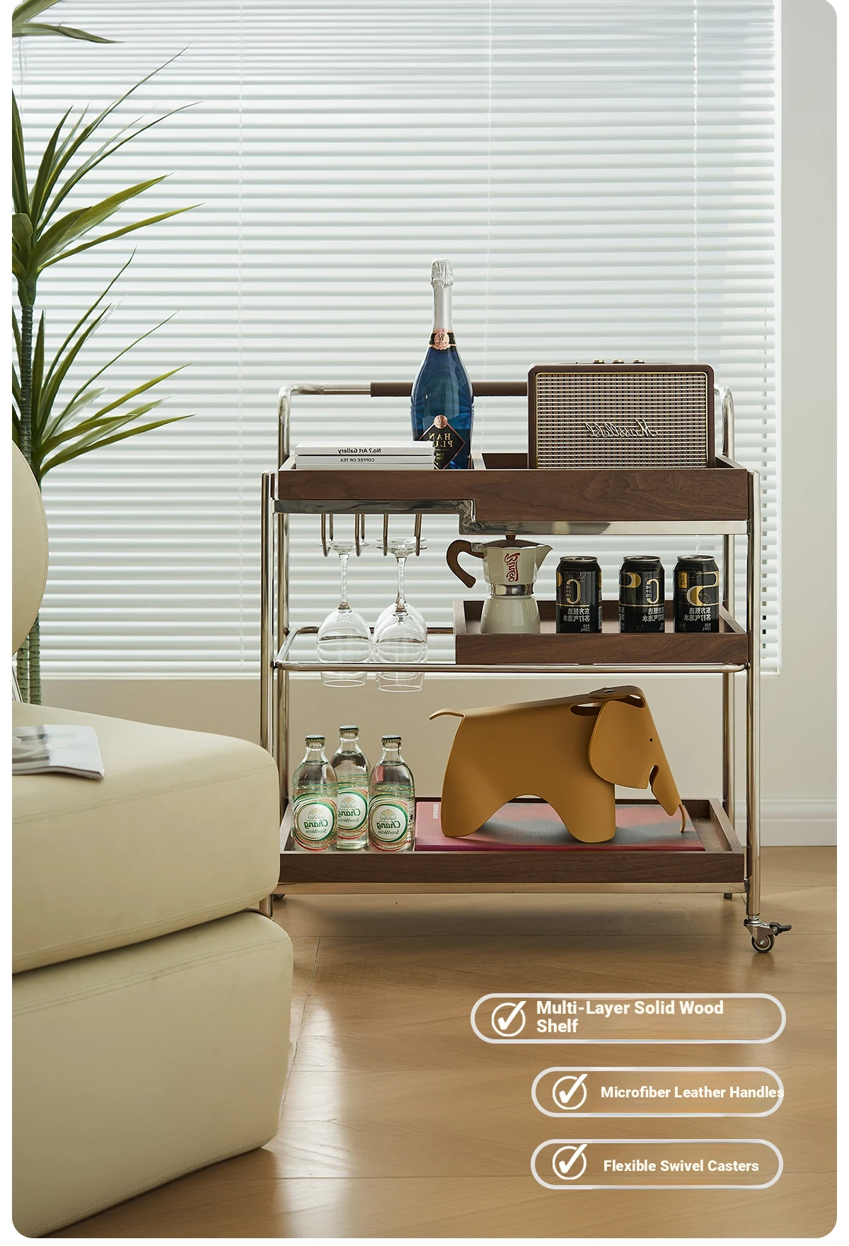 実木製のリビング用可動式ソファサイドテーブル - レトロなキャスター付きサイドキャビネット、便利なお茶テーブルとしても使用可能!どんなインテリアにもぴったりのスタイリッシュデザインで、空間を演出します。
