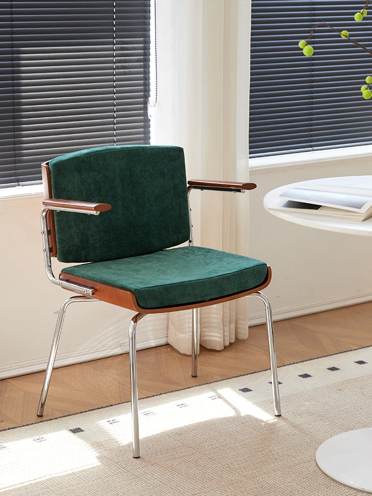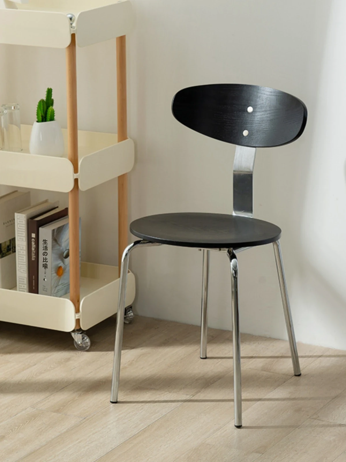 スカンジナビア風ヴィンテージデザインのステンレス製友人用ダイニングチェア - 自宅用背もたれ付き、リッチなデザインでおしゃれな食卓を演出、メイクアップチェアとしても最適!